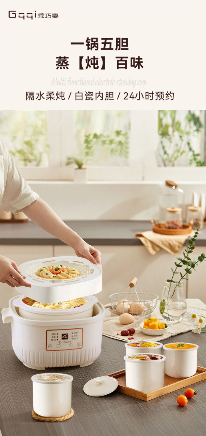 electric stew pot 2l + 0.5l stew cup 4
