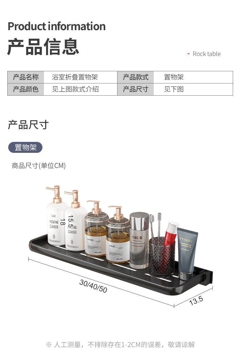 punch-free folding bathroom table storage rack bathroom toilet wash basin storage rack wall-mounted