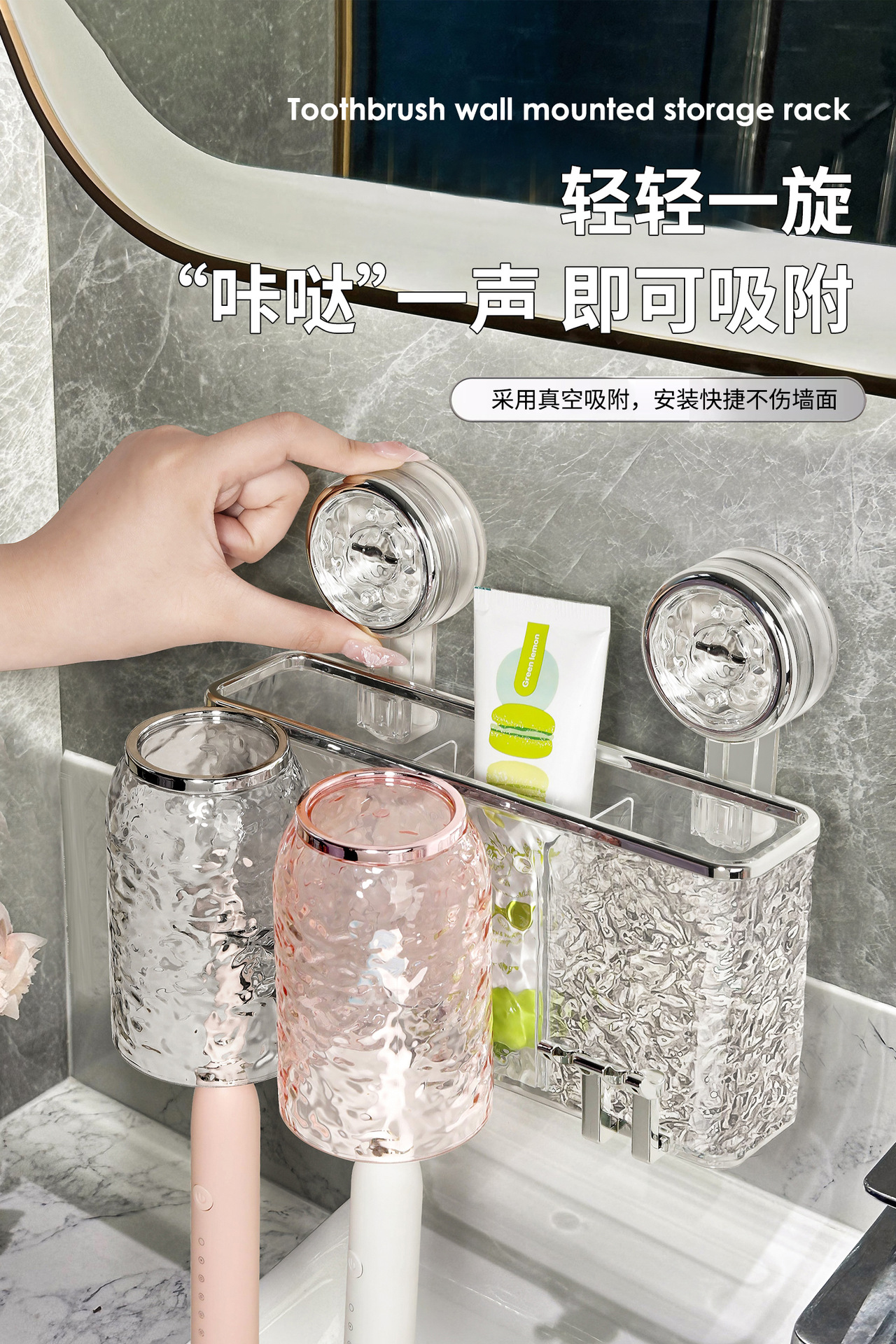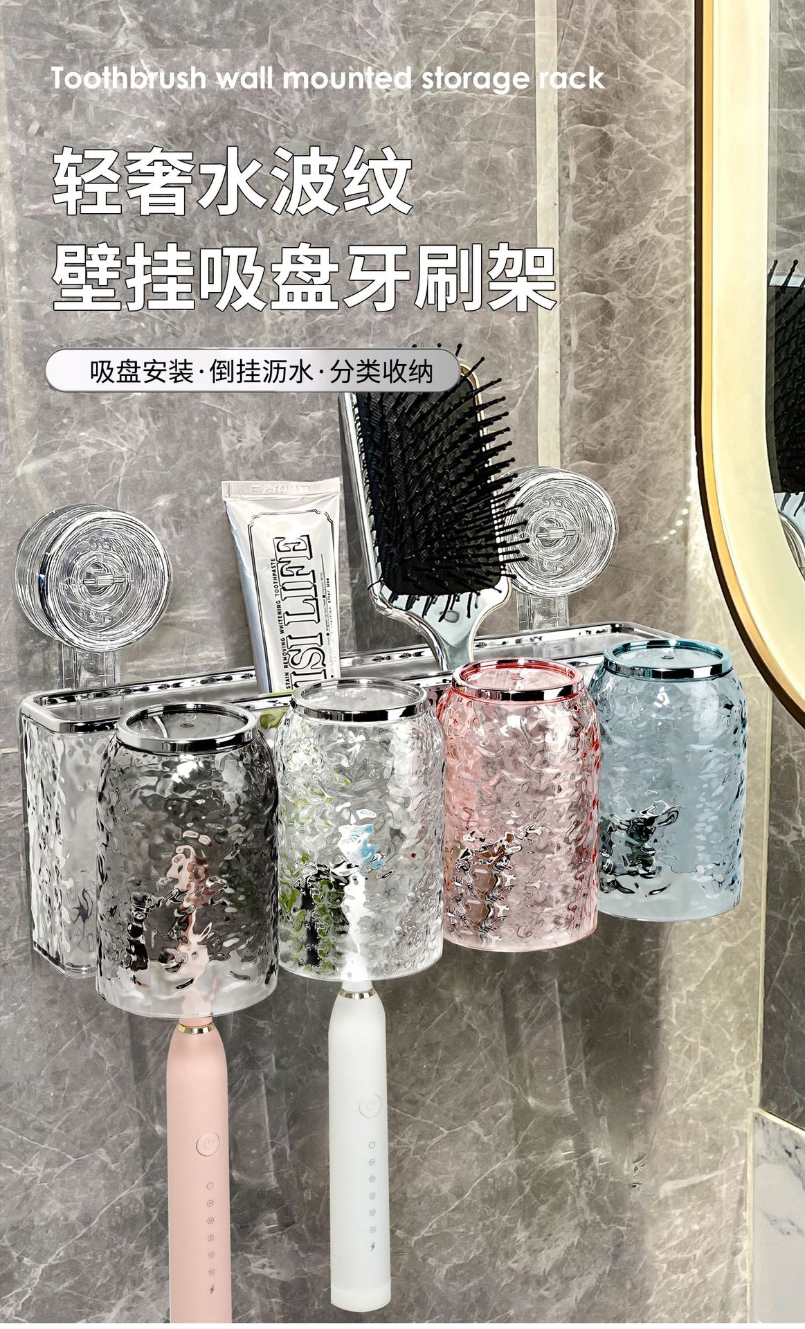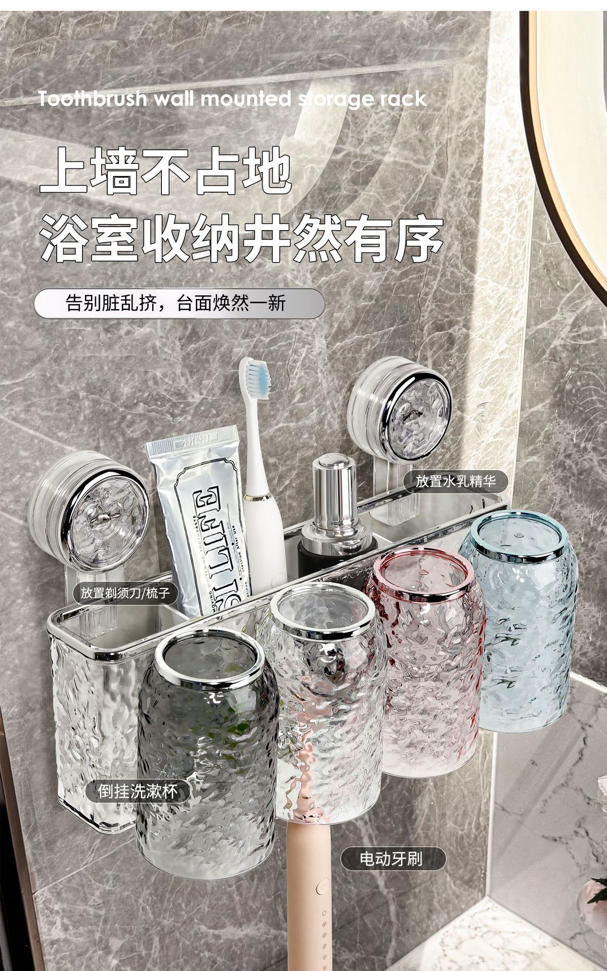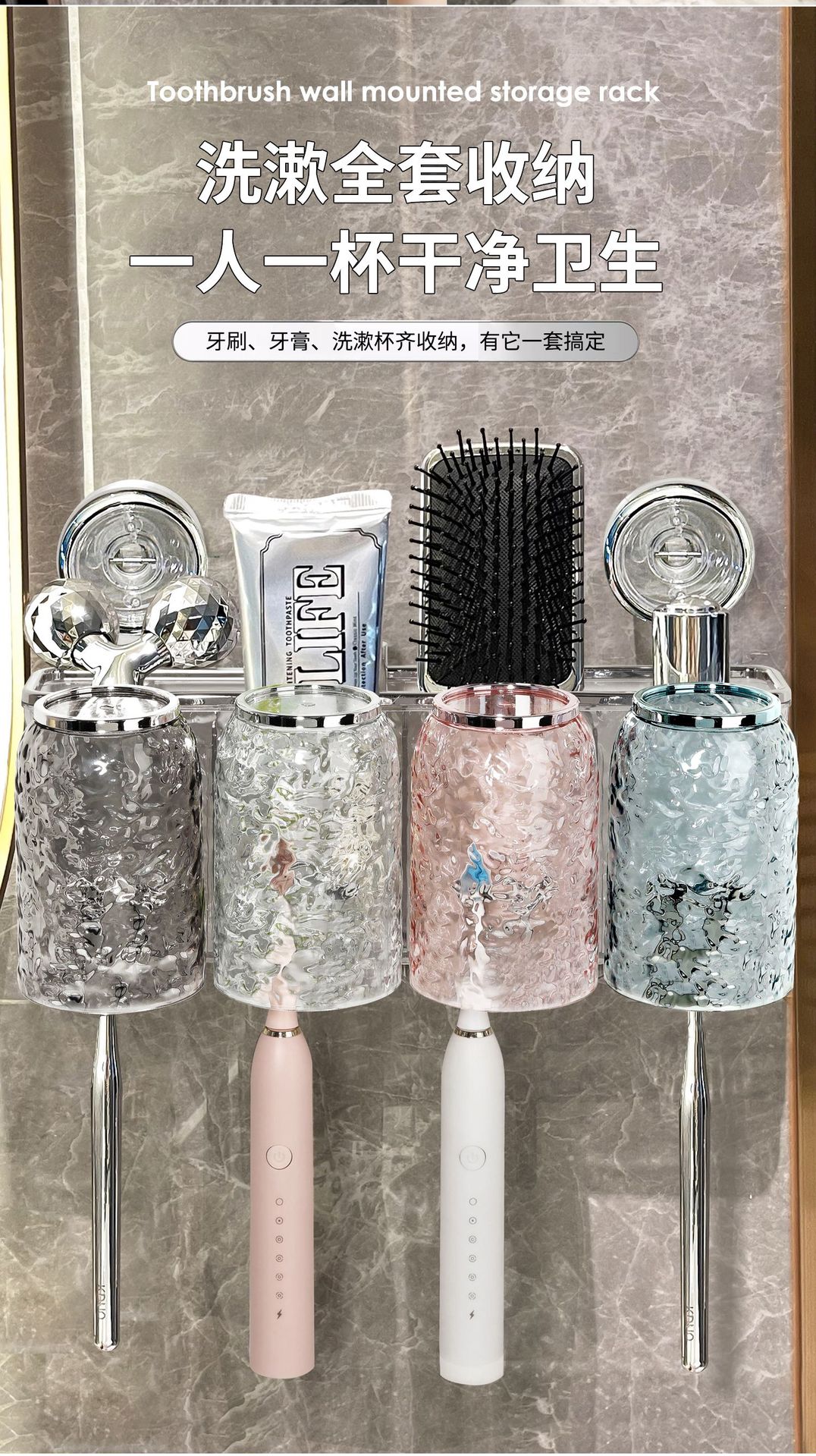 suction cup cup toothbrush rack punch-free wall-mounted bathroom tooth cup gargle cup electric toothbrush holder