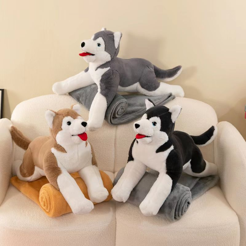 new cute lying husky plush toy pillow and blanket 2-in-1 airable cover doll birthday gift 中文版