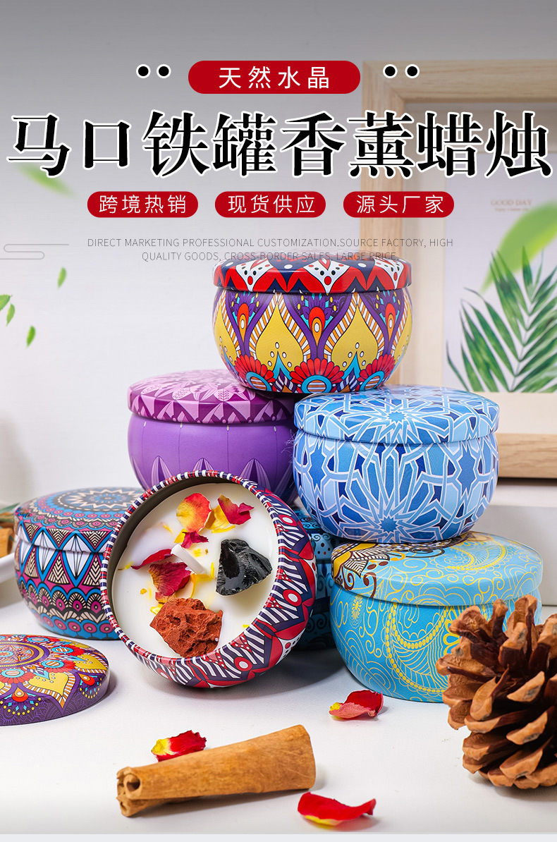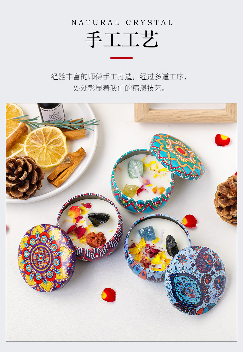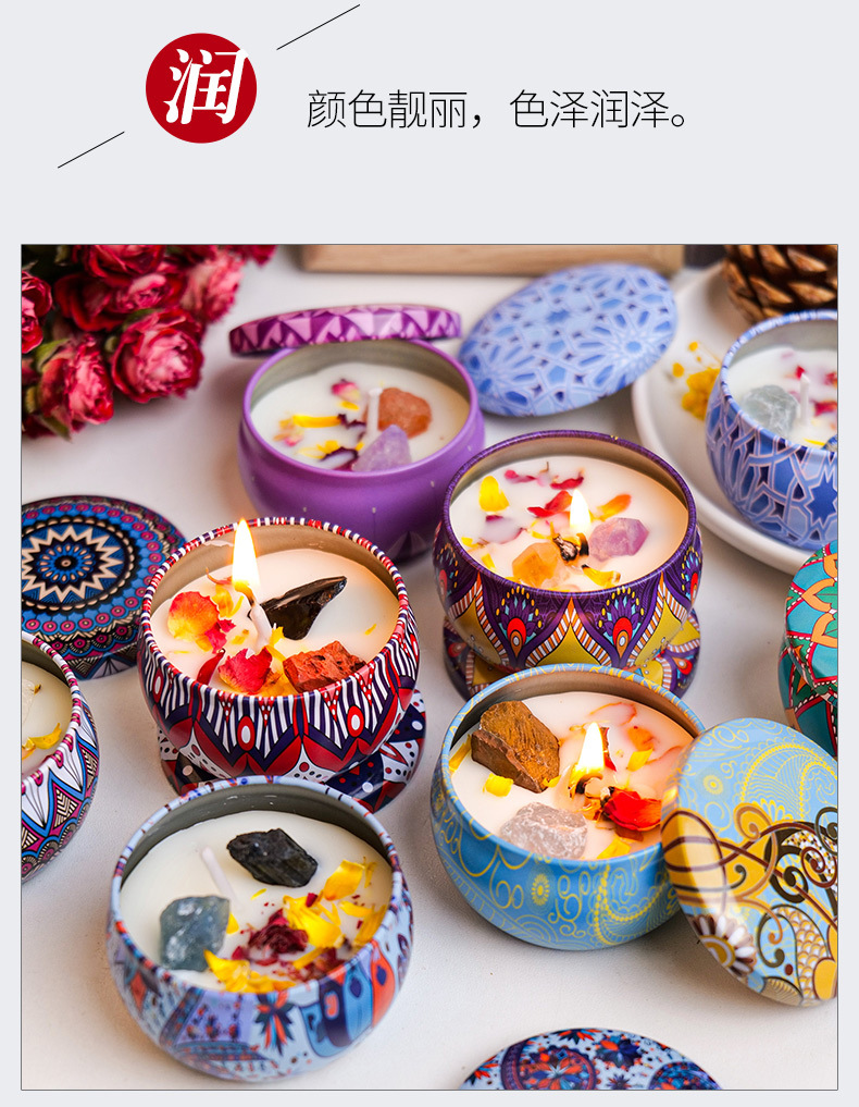 tinplate can rough stone dried flower candle (random style)