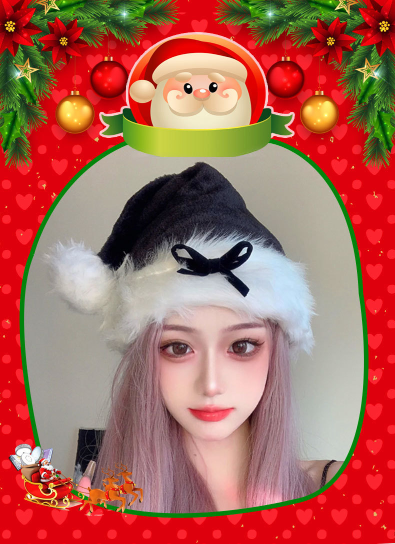 black bow plush flanging christmas hat