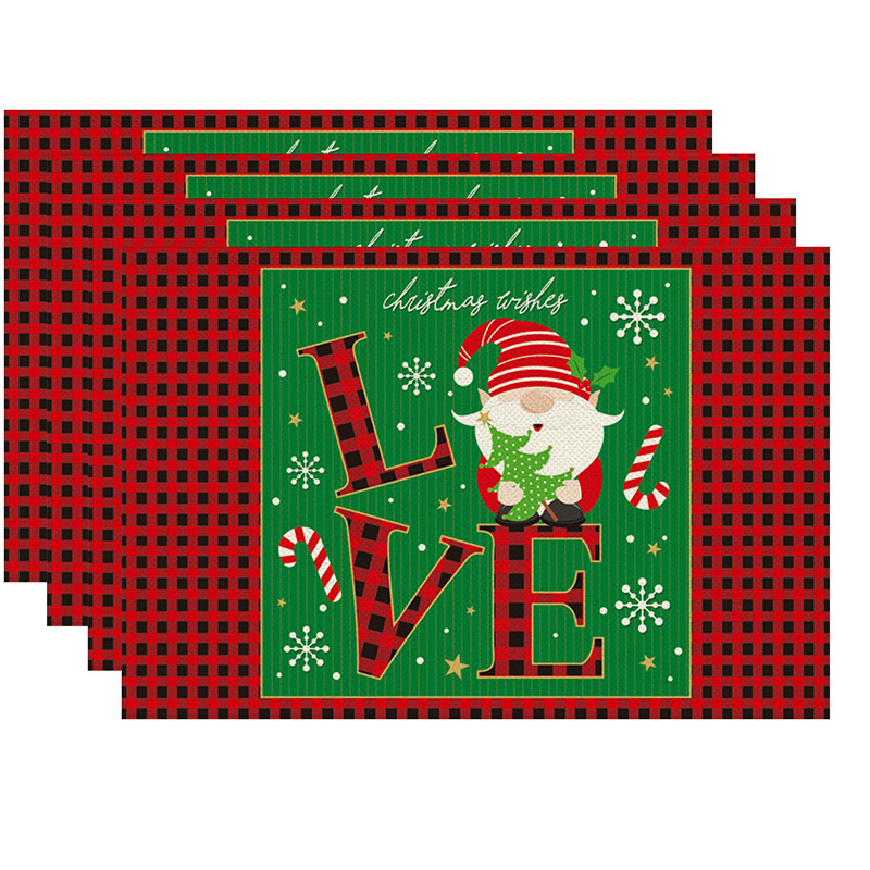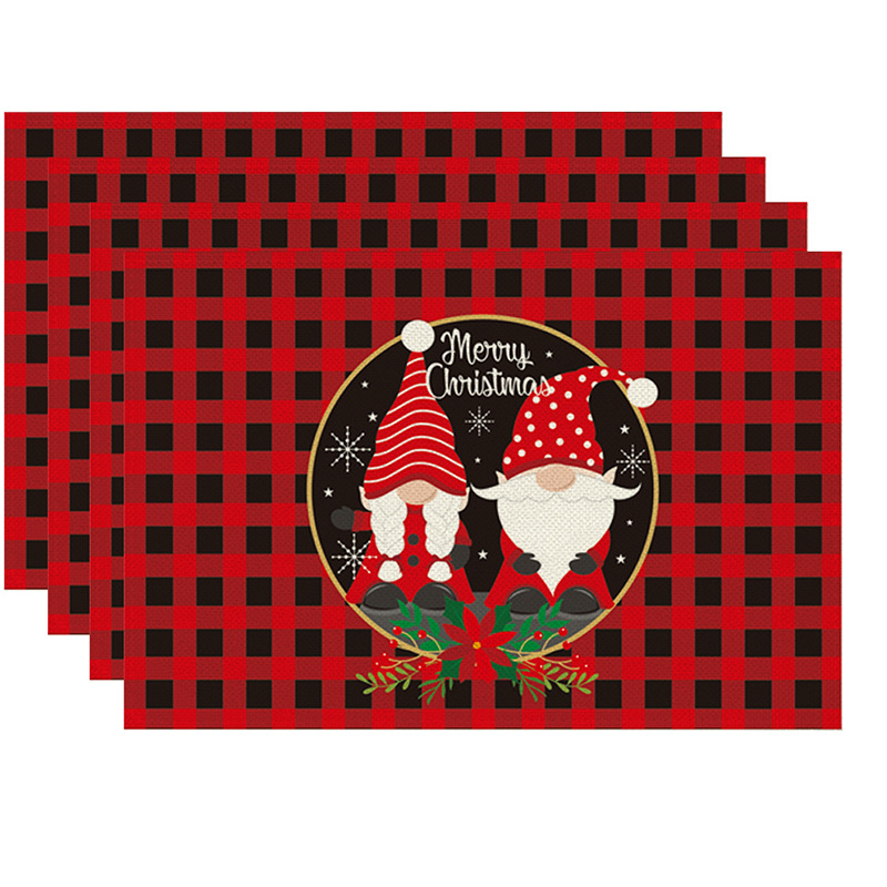 new cross-border christmas dwarf red square plaid printed placemat festival versatile western-style placemat wholesale 中文版