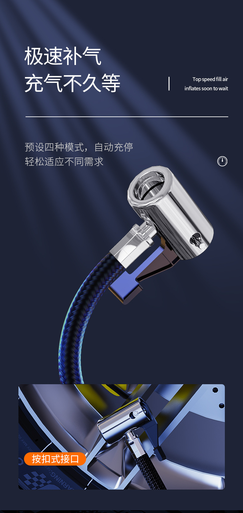 5, equipped with a complete set of air nozzles, which can be used to inflate tires, rubber boats, air mattresses, inflatable toys, ball-type inflatables, and other various applications.