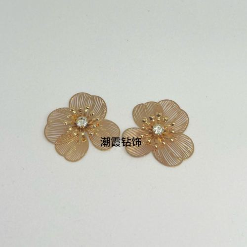trendy diamond decorations hollow flower fashion personalized cold style temperament high sense wholesale 中文版