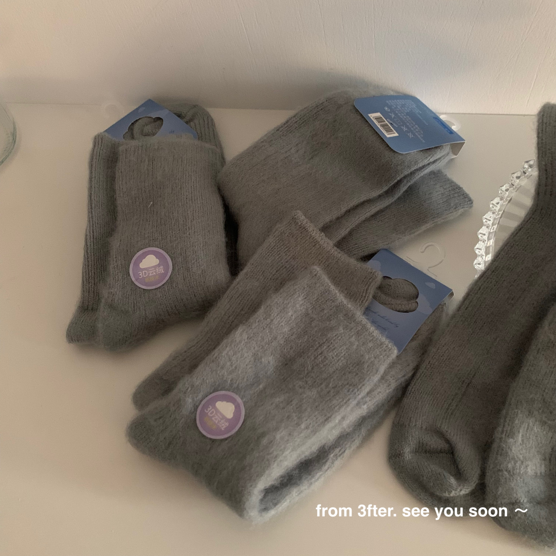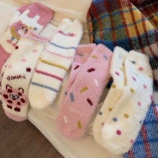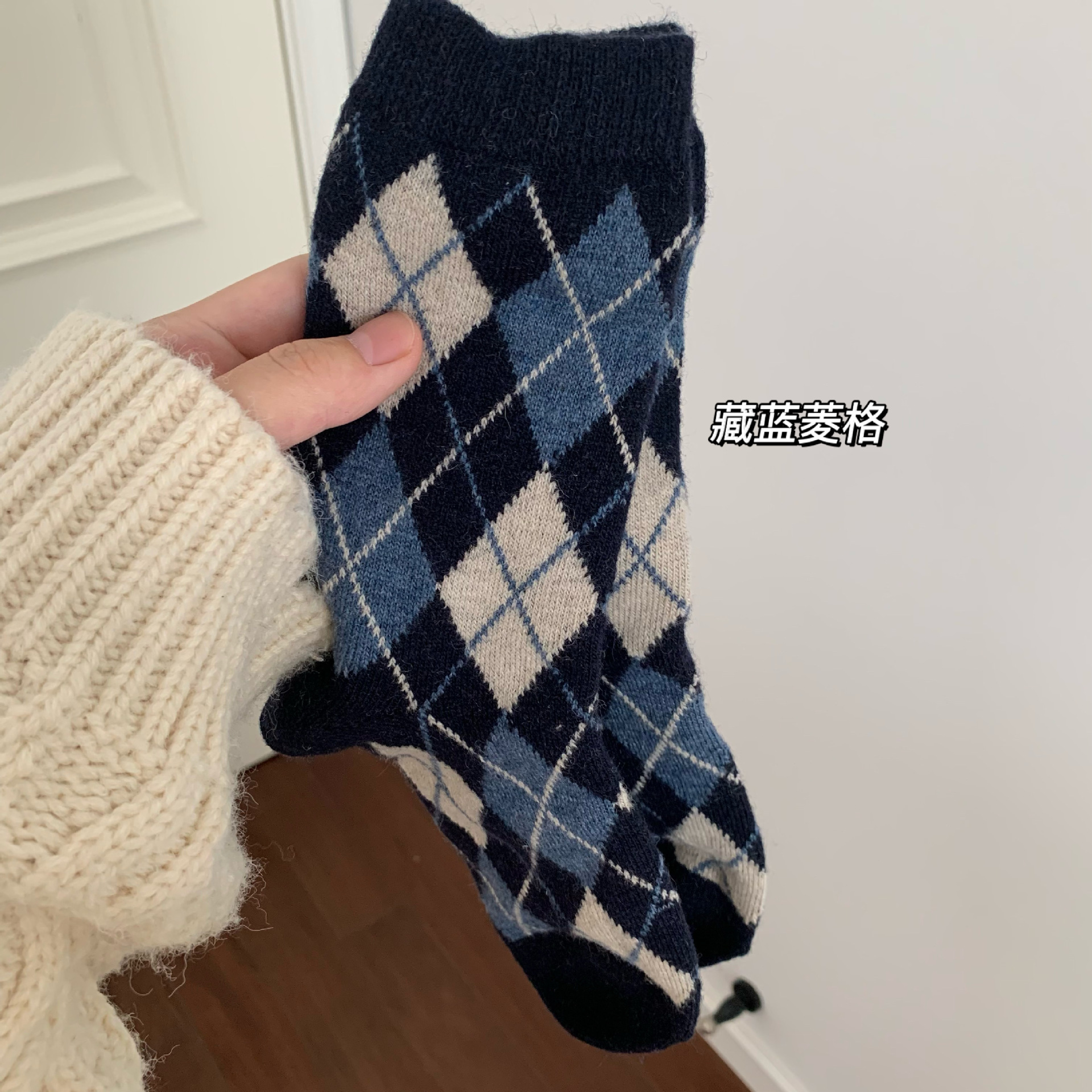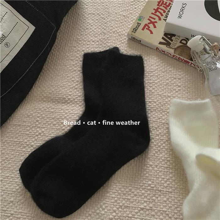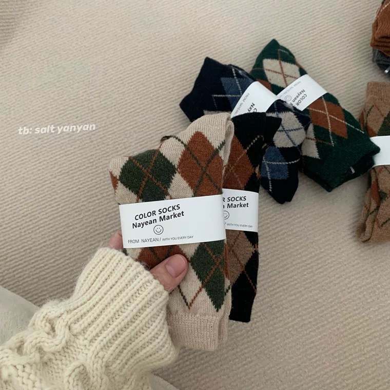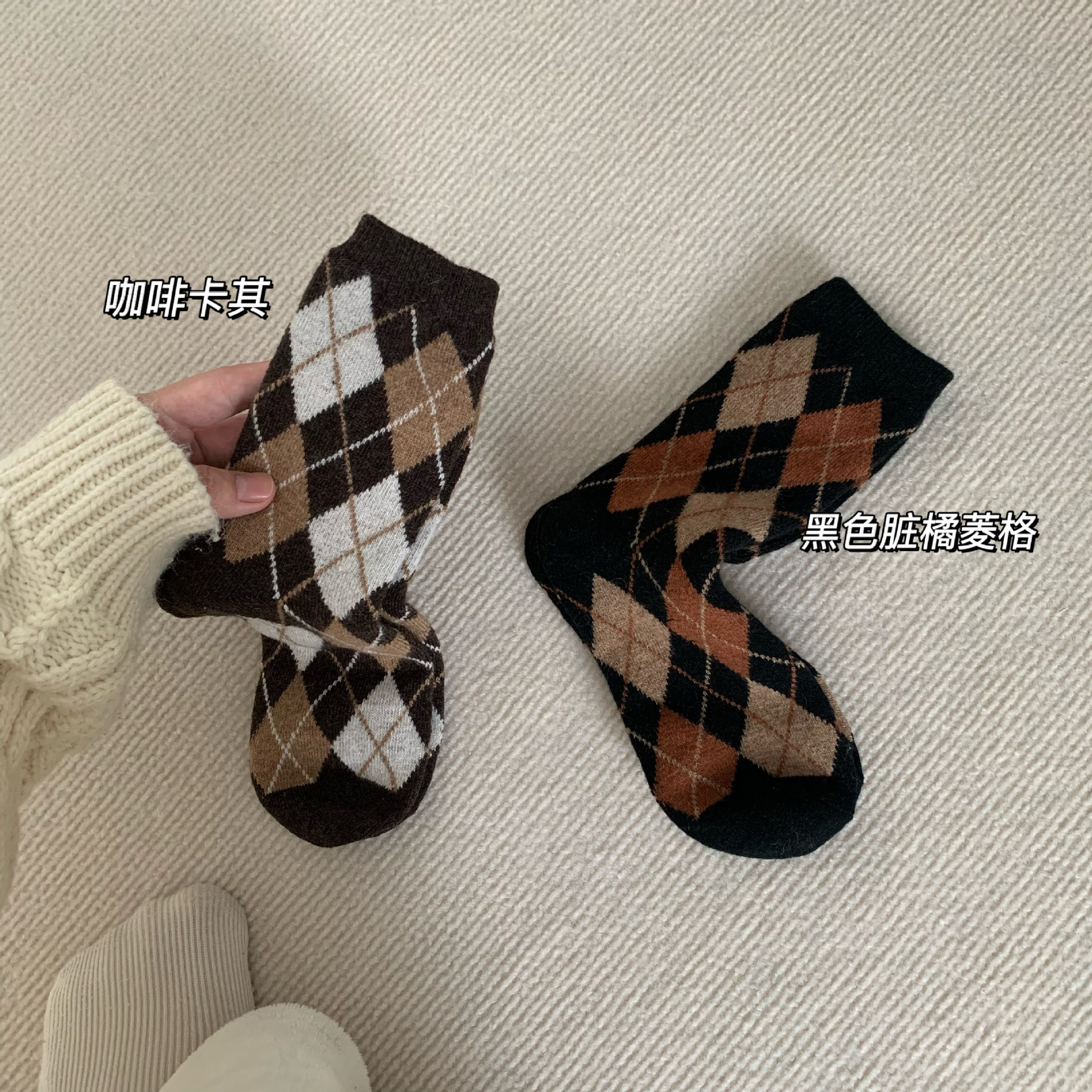 The thickness of the houndstooth socks and the furry socks is different, so they are not the same pair. Please do not mind if you do not like it, as the cost difference is not large and they are sold together. You cannot compare them with each other, as they are not the same style. The houndstooth style has wool inside, so please do not mind if you do not like it! The style is complex and cannot be avoided.