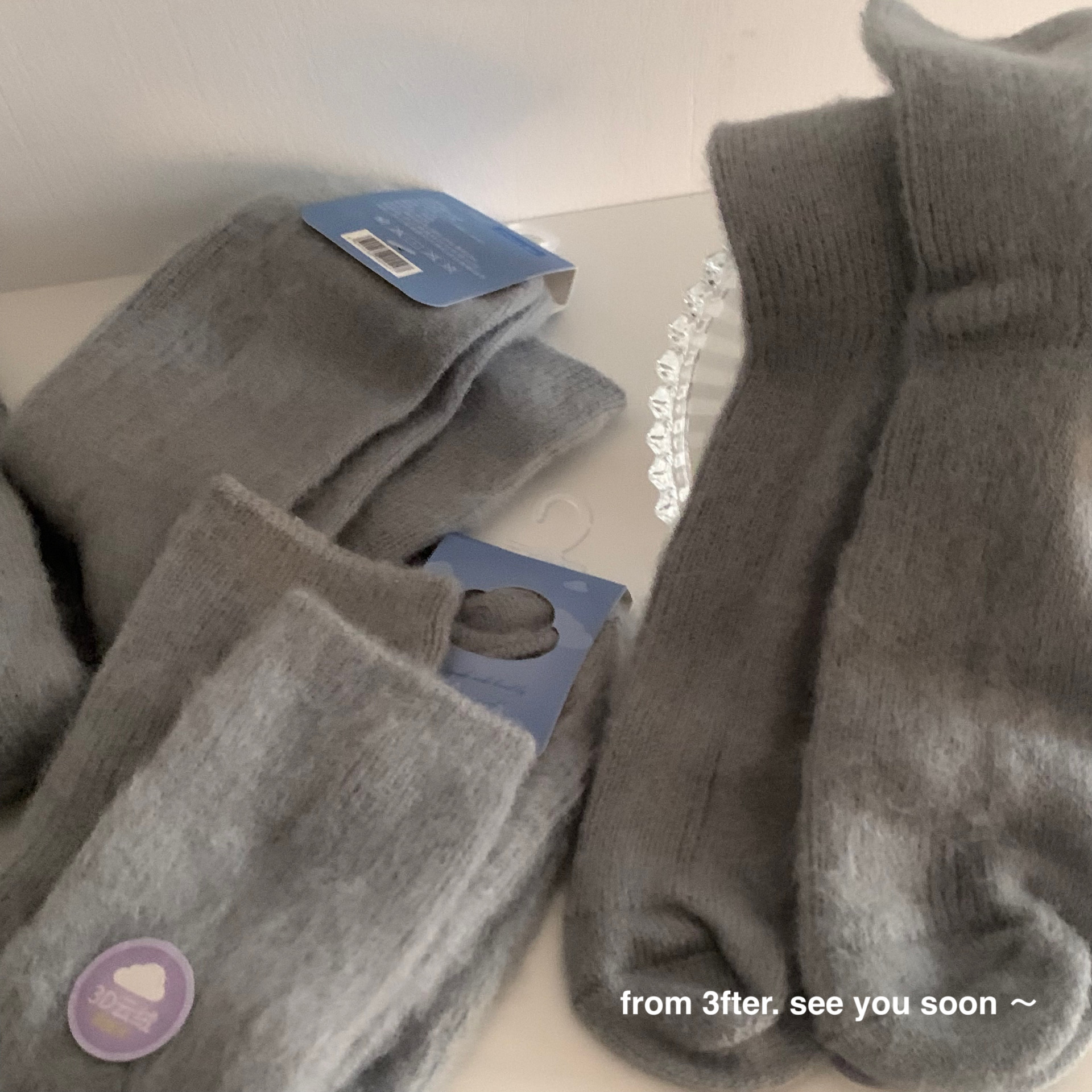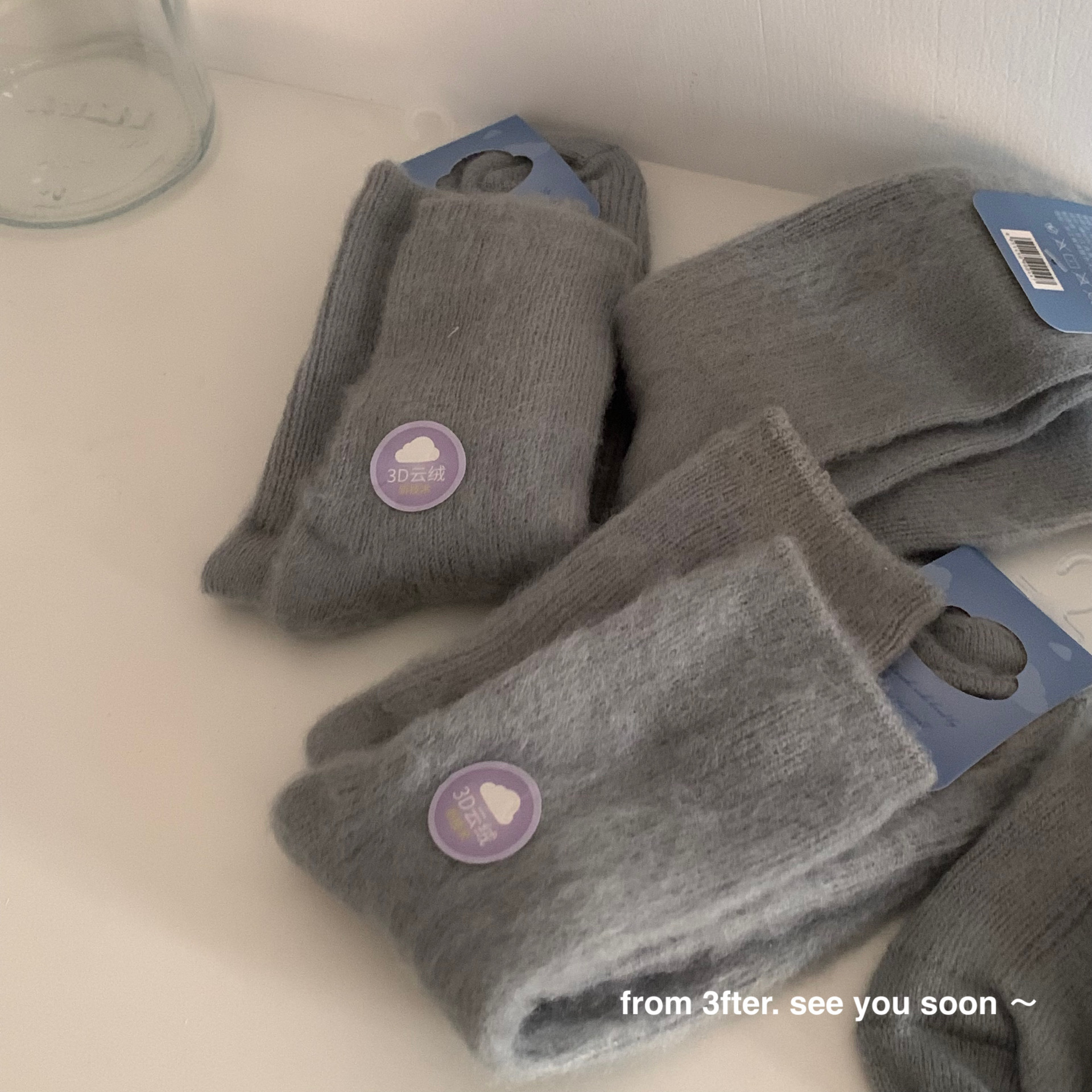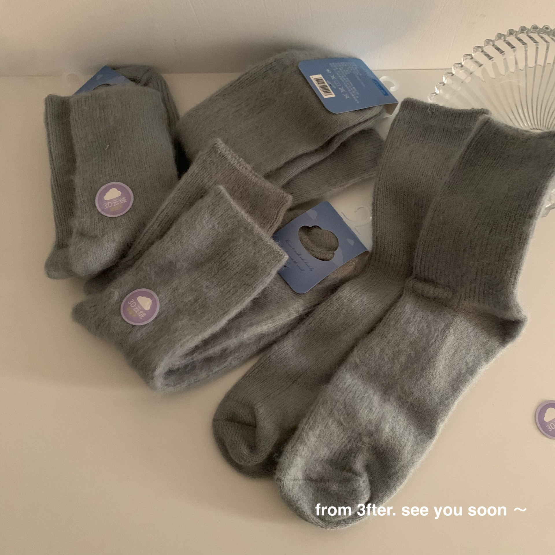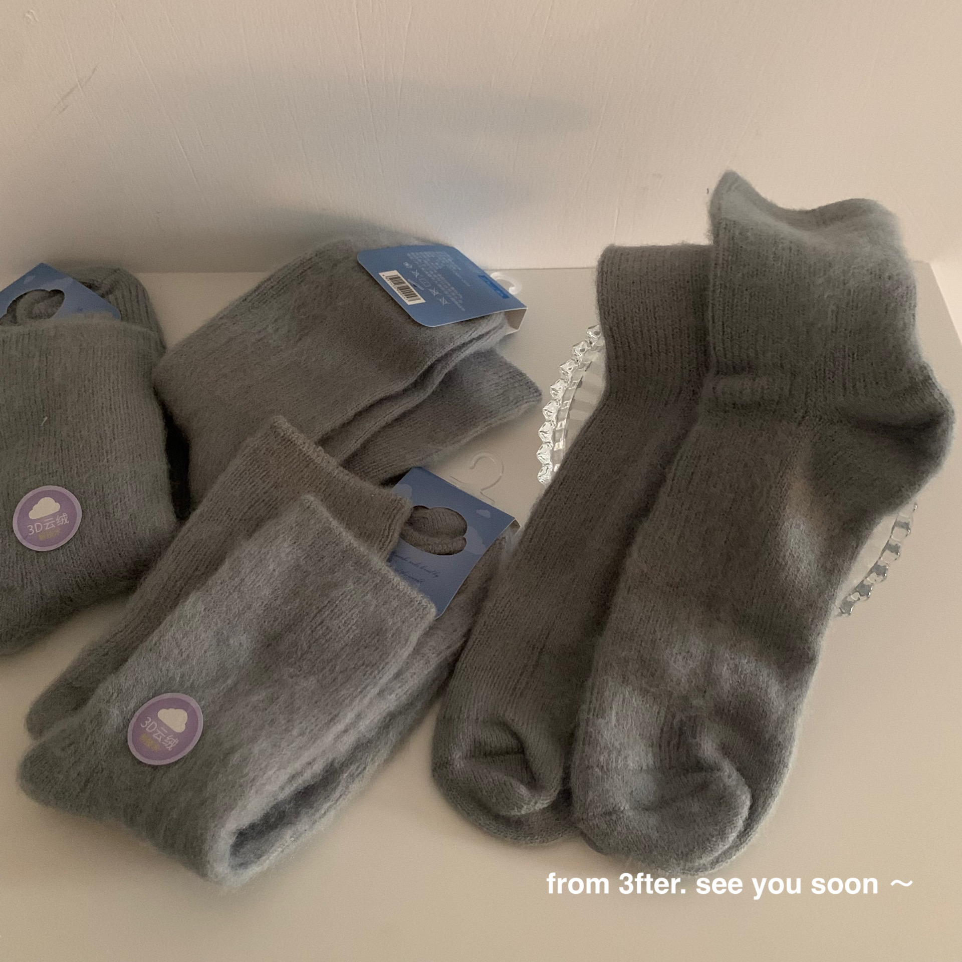 The thickness of the houndstooth socks and the furry socks is different, so they are not the same pair. Please do not mind if you do not like it, as the cost difference is not large and they are sold together. You cannot compare them with each other, as they are not the same style. The houndstooth style has wool inside, so please do not mind if you do not like it! The style is complex and cannot be avoided.