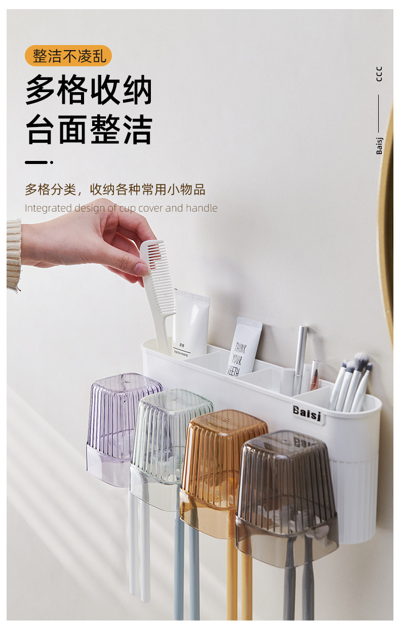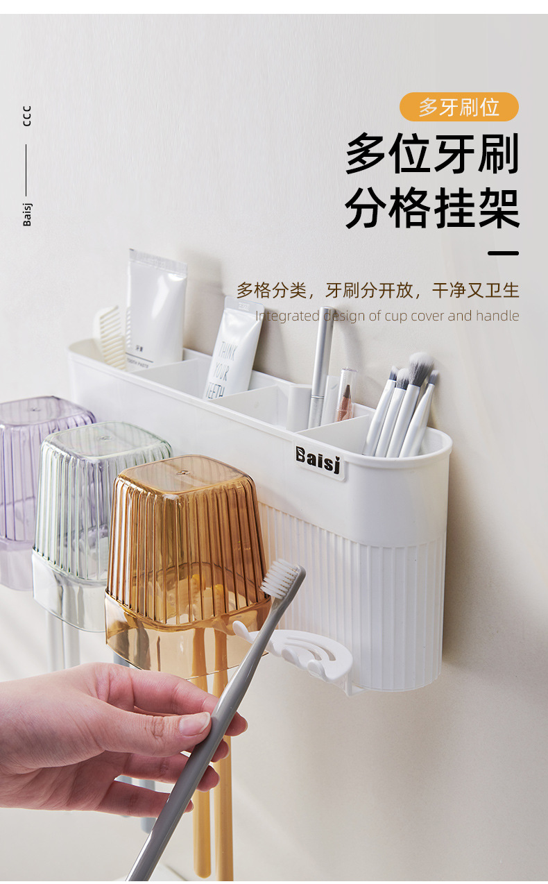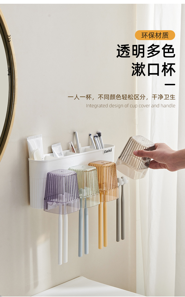 gargle cup punch-free toothbrush multi-function storage rack gargle cup tooth cup bathroom wall hanging suit wholesale · 中文版