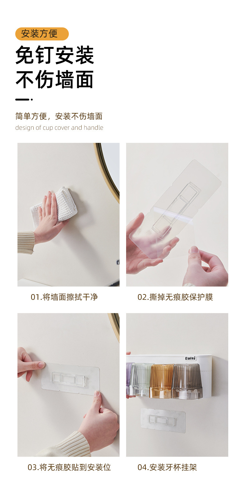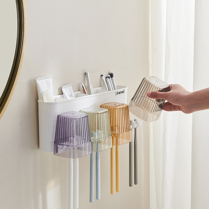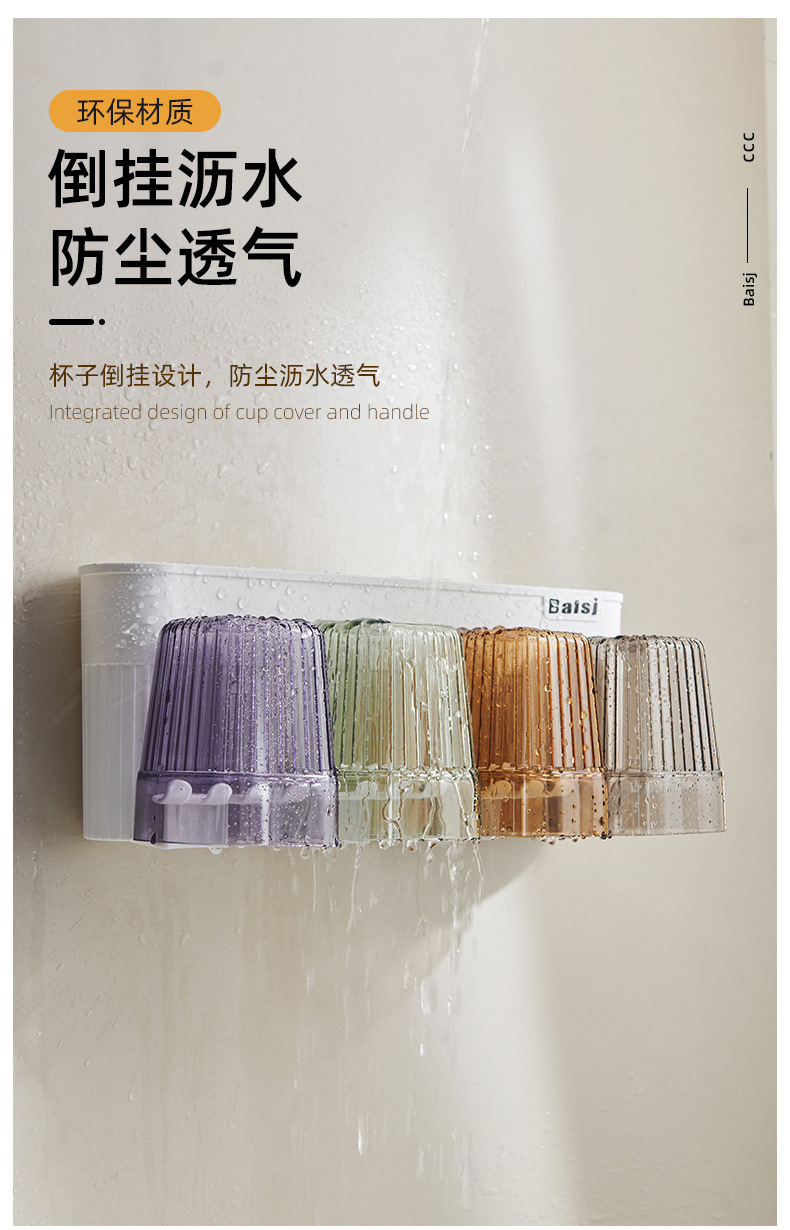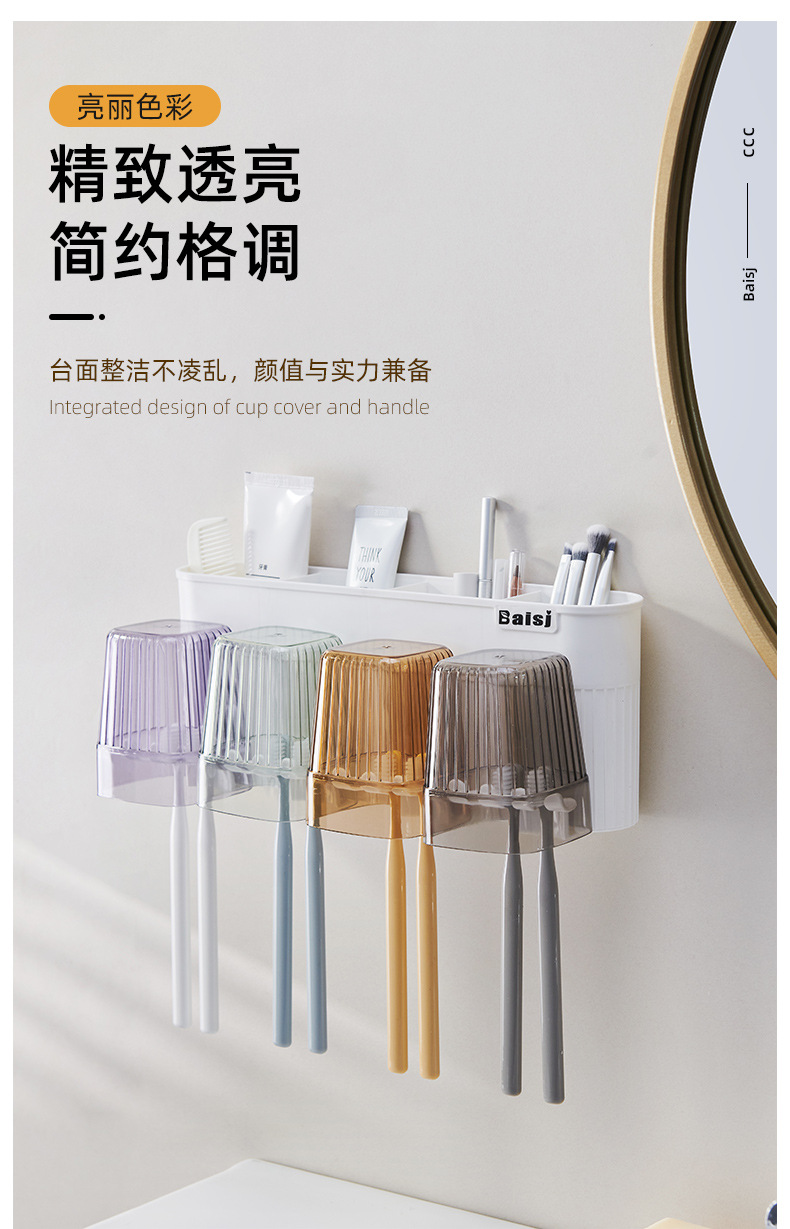 gargle cup punch-free toothbrush multi-function storage rack gargle cup tooth cup bathroom wall hanging suit wholesale · 中文版