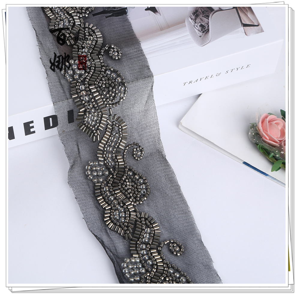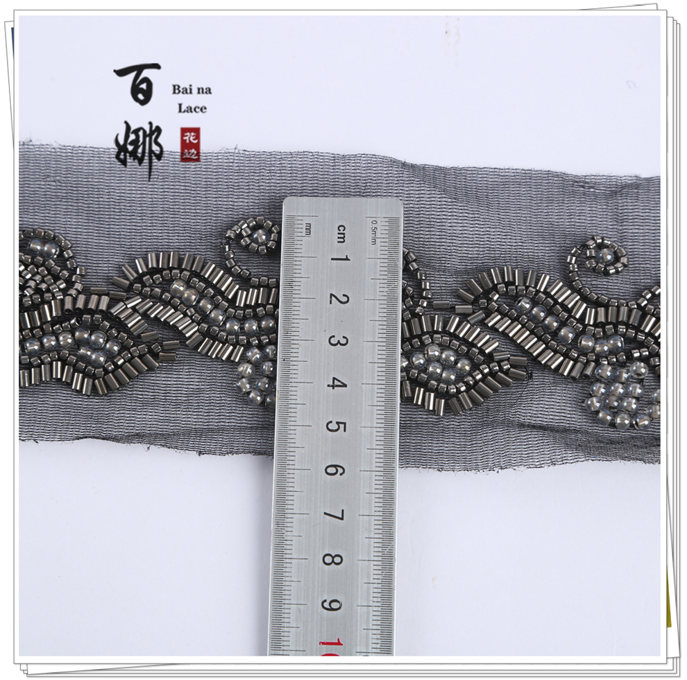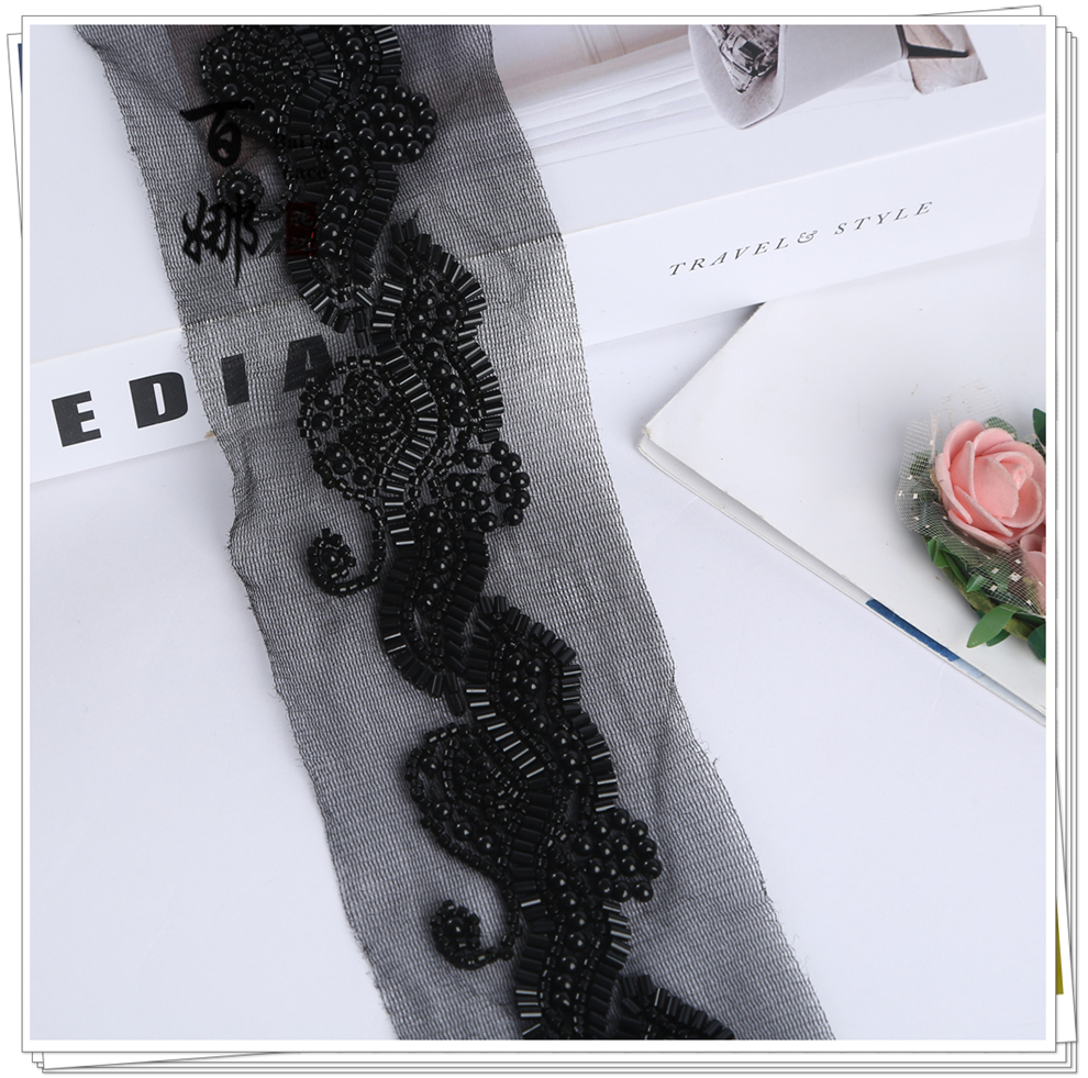 Product Name: In-stock Machine-Embroidered Netting Beaded Tree Leaf Pattern, Fashion Fur Accessory, Beaded Lace with Barcode, Curtain, Shoes, Jewelry