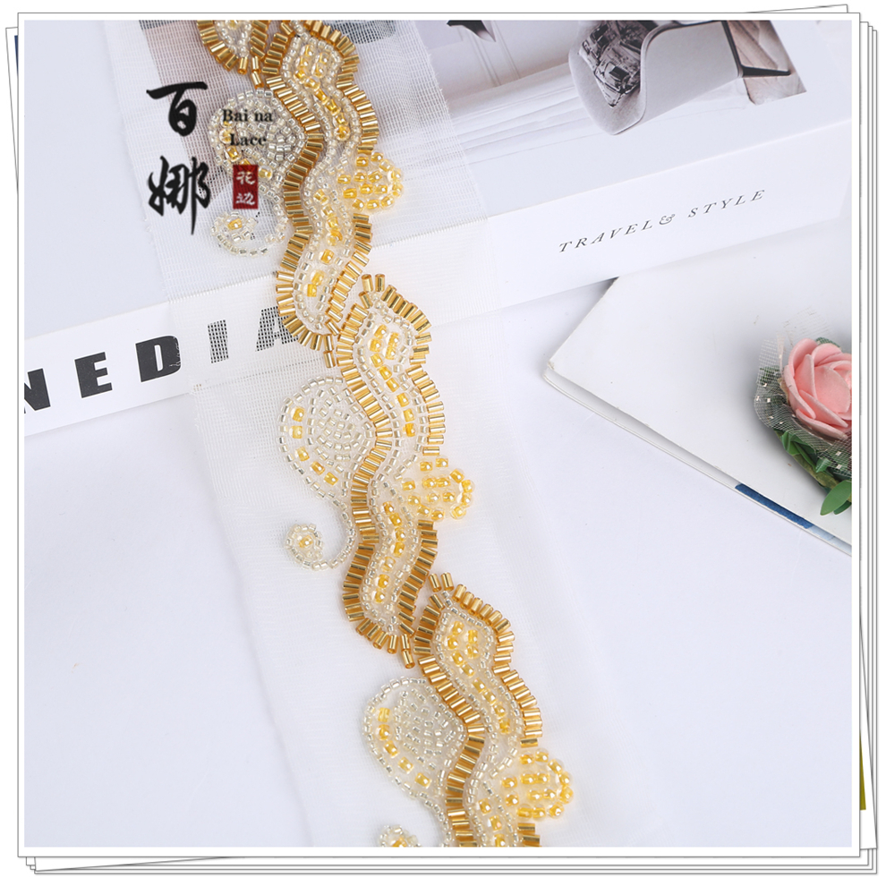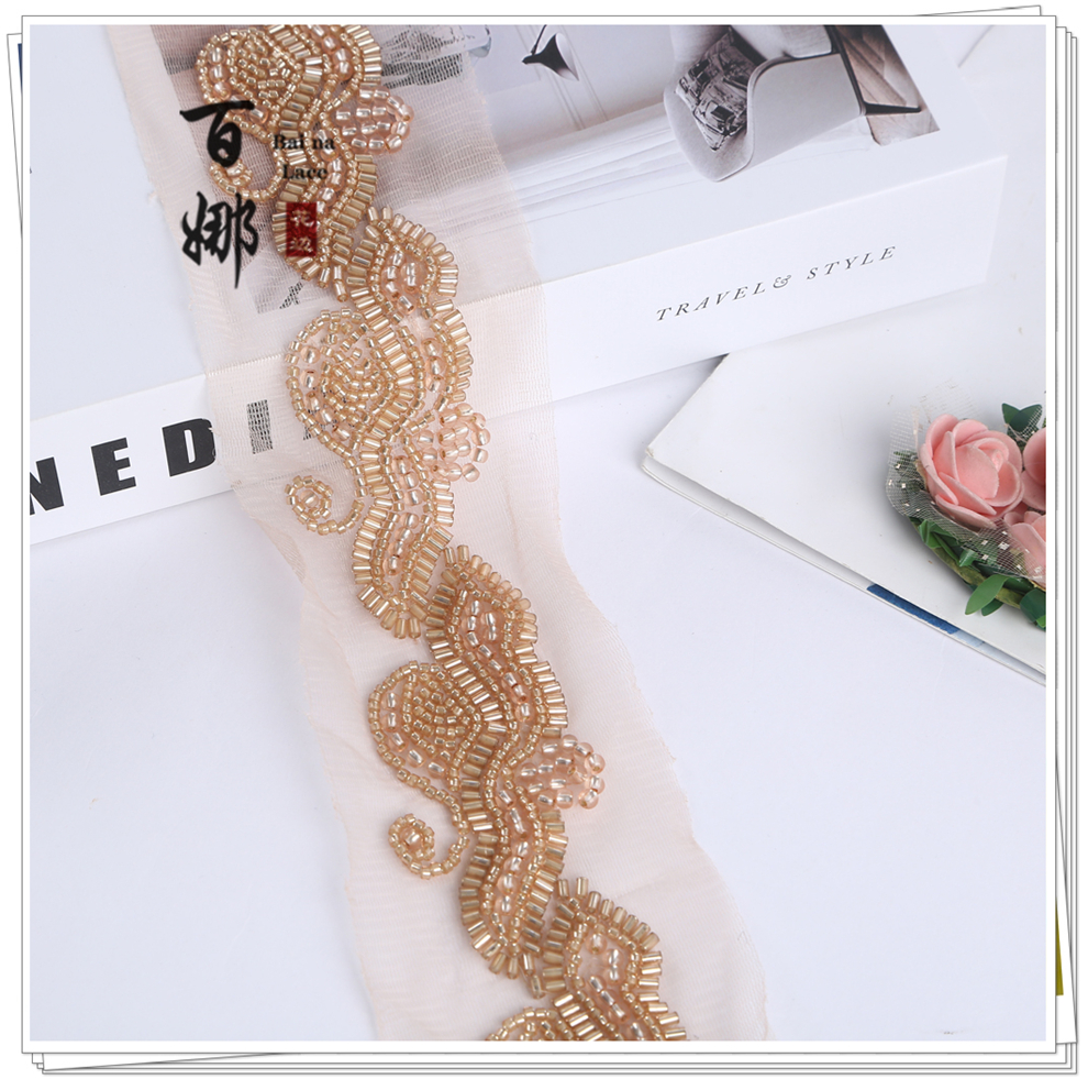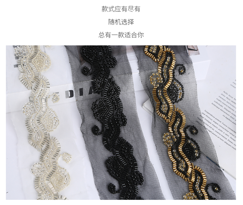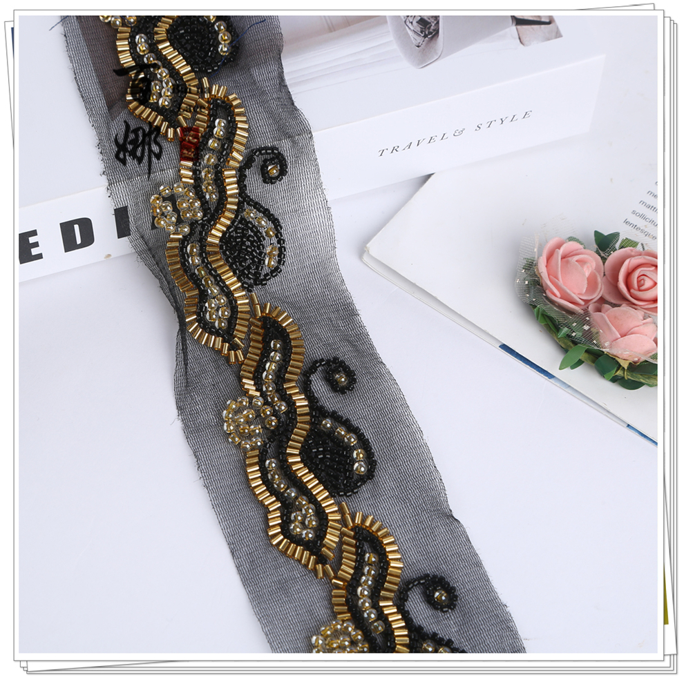 Product Name: In-stock Machine-Embroidered Netting Beaded Tree Leaf Pattern, Fashion Fur Accessory, Beaded Lace with Barcode, Curtain, Shoes, Jewelry