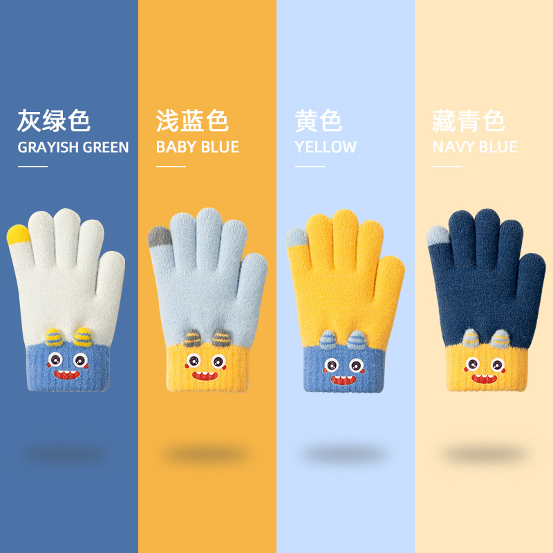 Girls' winter gloves, Korean version, student writing half-finger, open-fingered outdoor anti-cold and warm, boys' gloves, custom children's gloves, cartoon excavator for boys, autumn and winter, cute half-finger, open-fingered knitted woolen anti-cold and warm, custom children's gloves, boys, autumn and winter, cartoon cute dinosaur, female baby knitted warm anti-cold, five-fingered woolen custom.