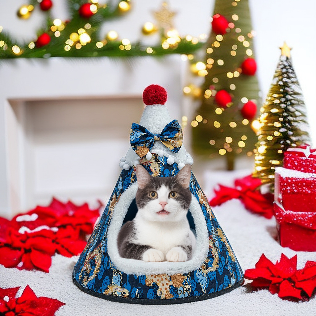 Product Name: Christmas Hat-shaped Sponge Pet Bed (Pillow Removable)