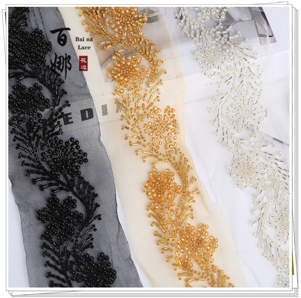 Product Name: Stage Costume Open-front Hanfu Collar Headscarf Decorative Lace Net Base Beading Machine Embroidery Accessory