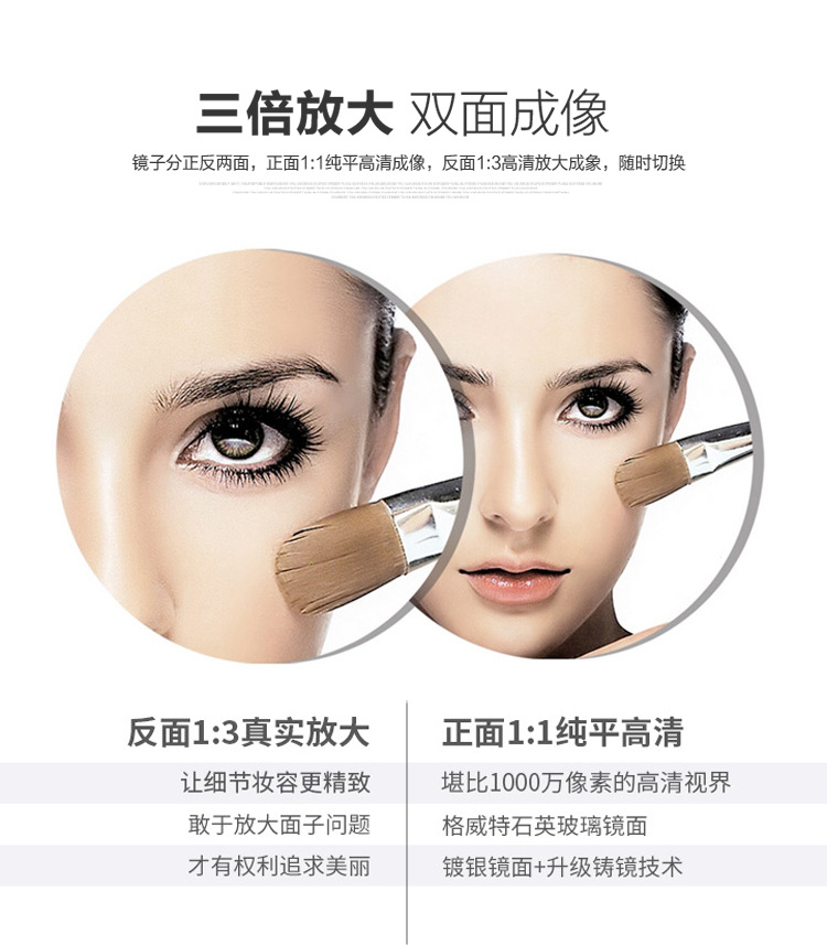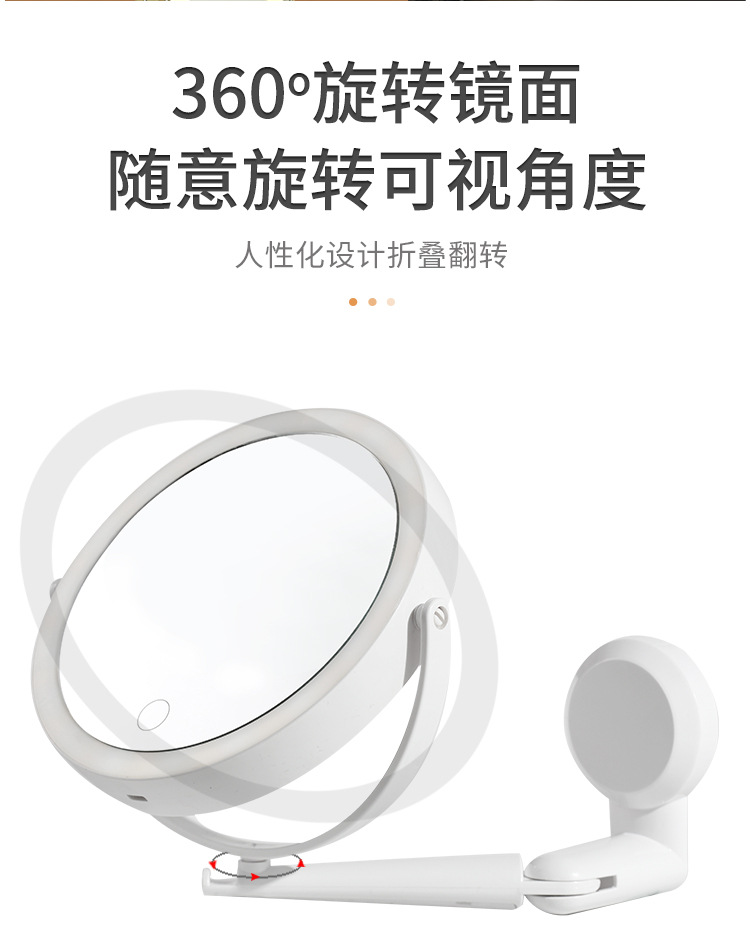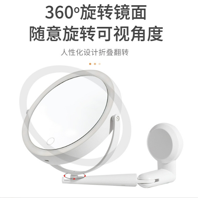 led three-color rotating folding makeup mirror double-sided wall hanging with light fill light mirror triple amplification bathroom mirror punch-free 中文版