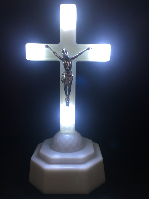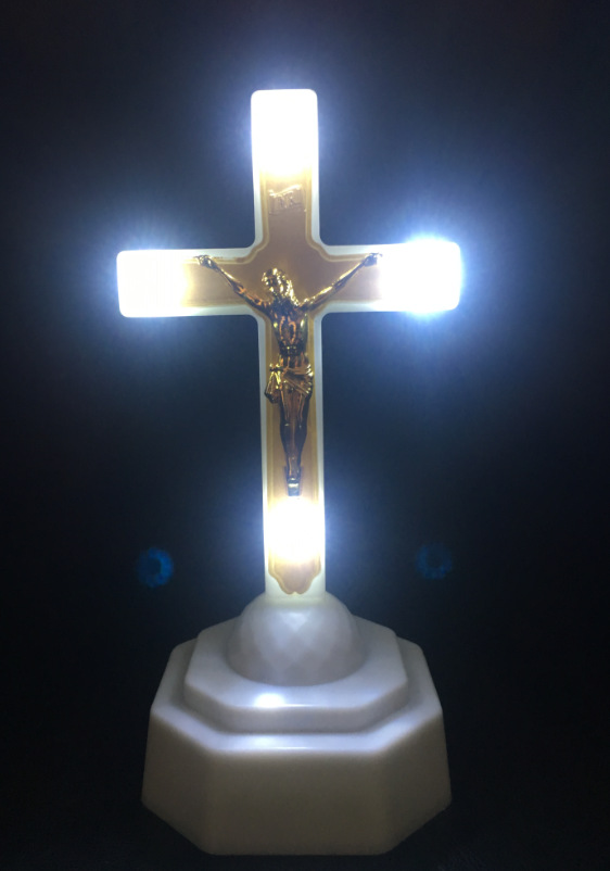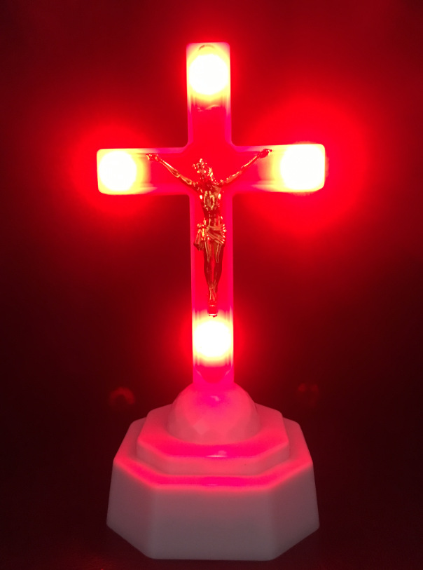 Product Name (Catholic Statues):Cross LED Light Holy Body Light Home Church Decor(Ikon cross the red blue and white leds eucharistic lamp home church furnishing articles)