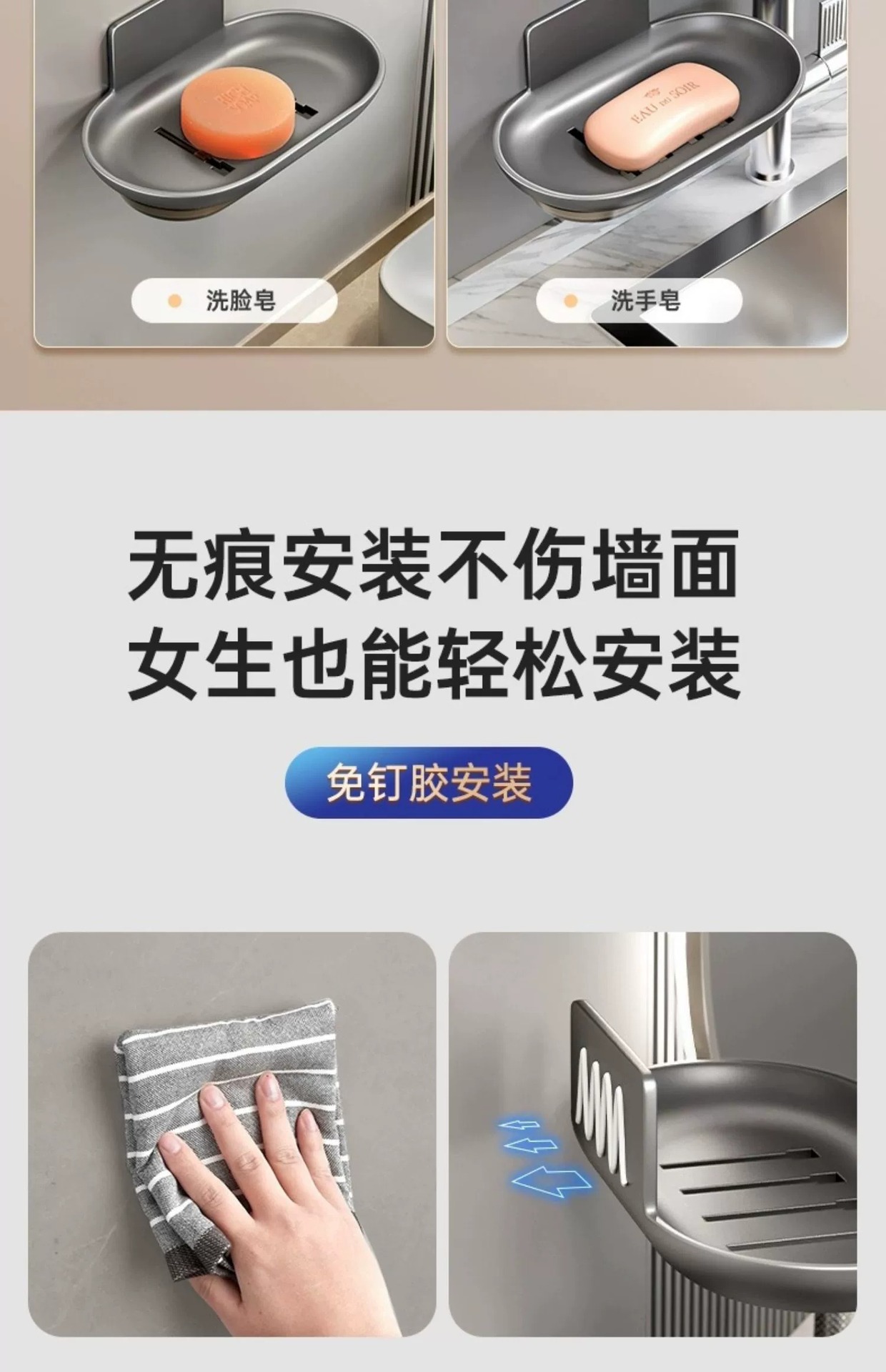 bathroom soap box gun gray alumimum soap box punch-free wall-mounted household bathroom rack