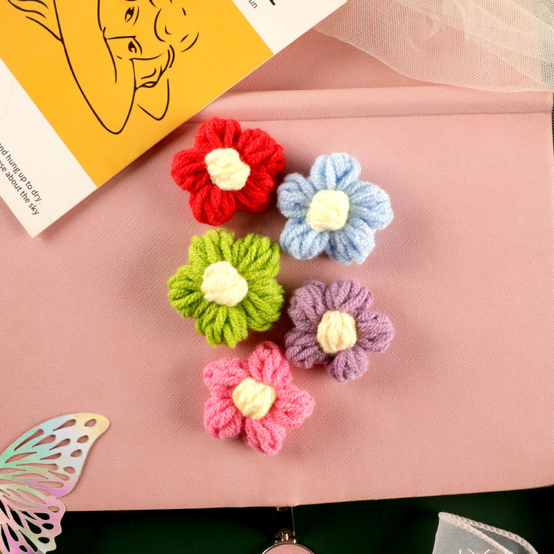 cute fresh flower handmade wool crocheted cute flower diy barrettes flower pin accessories clothes accessories