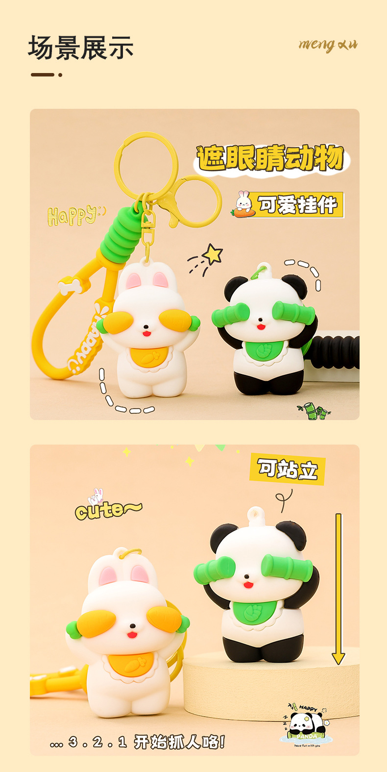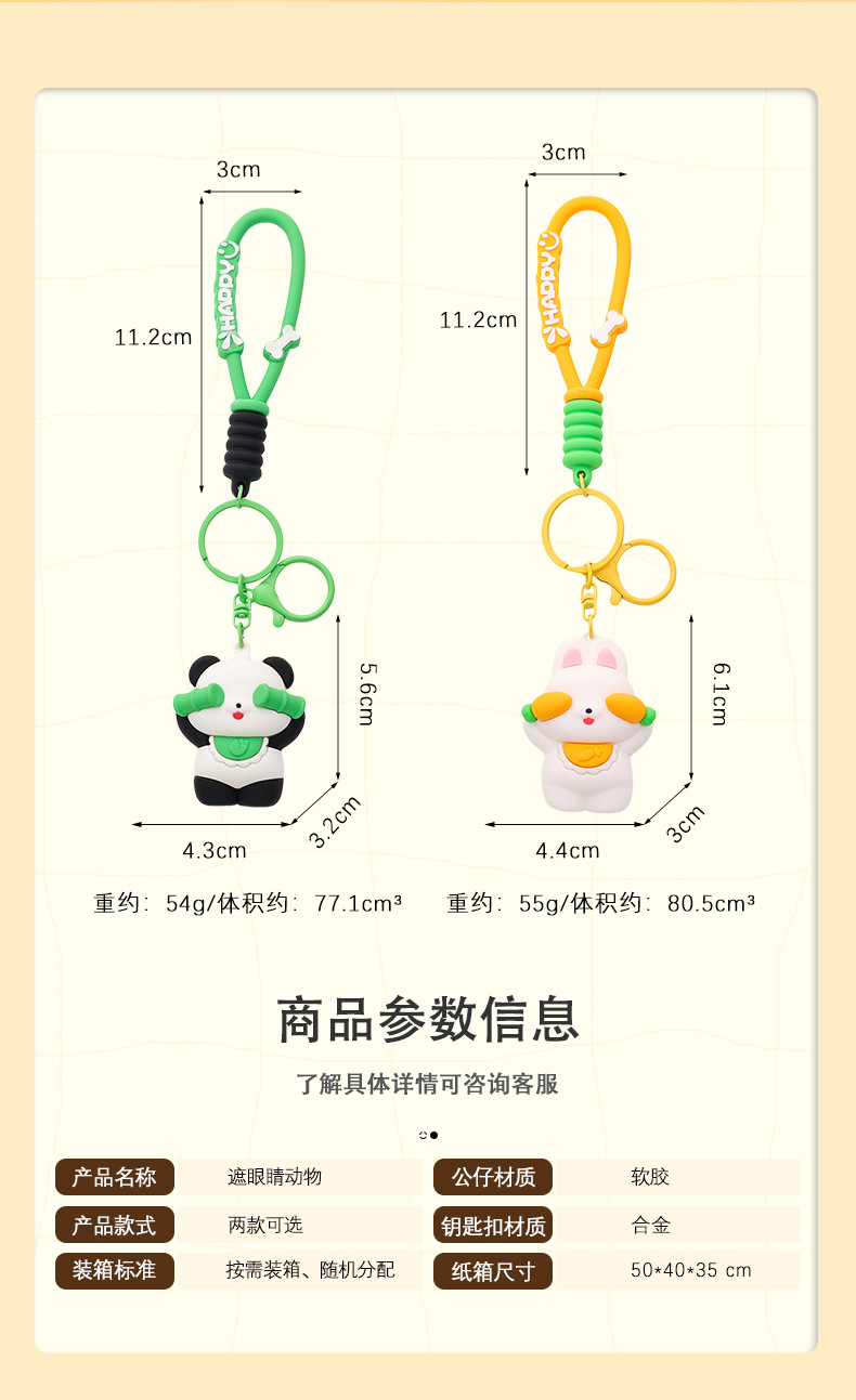 original cartoon animal keychain pendant female three-dimensional doll car key chain student schoolbag pendant small gift