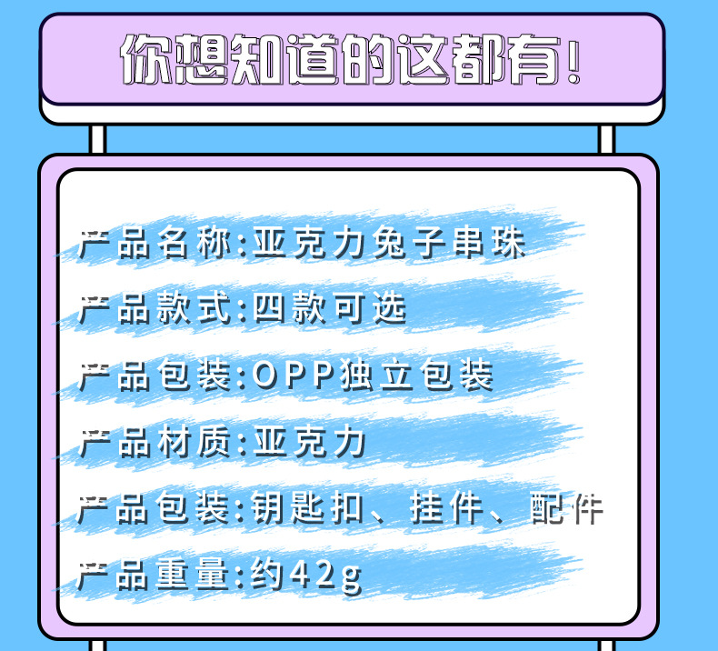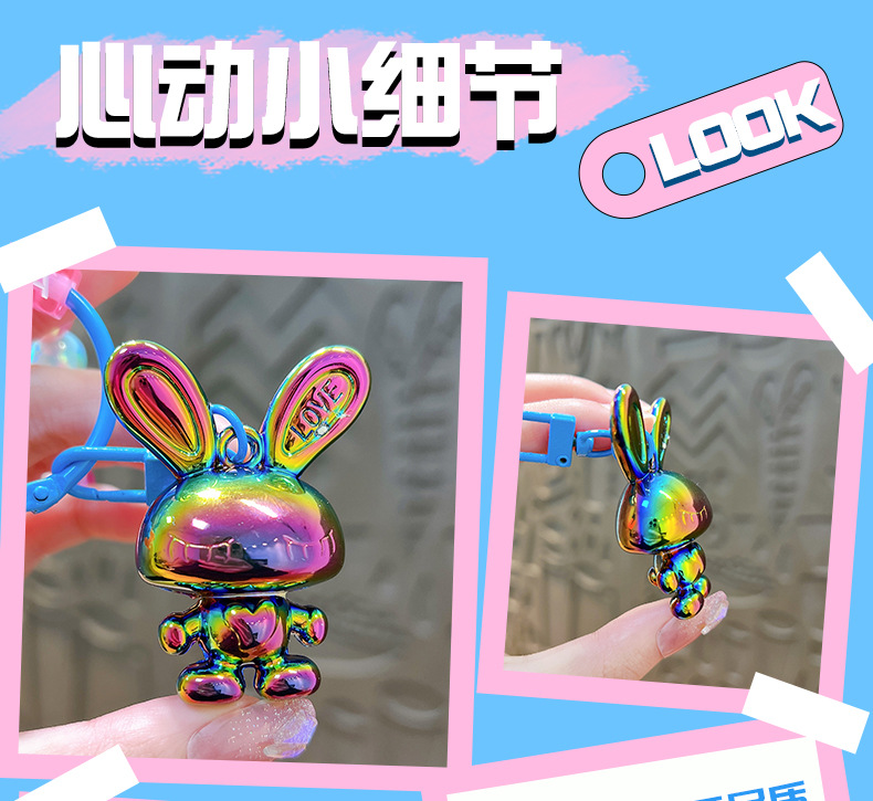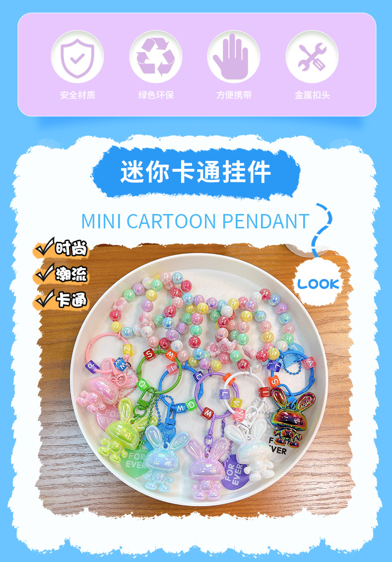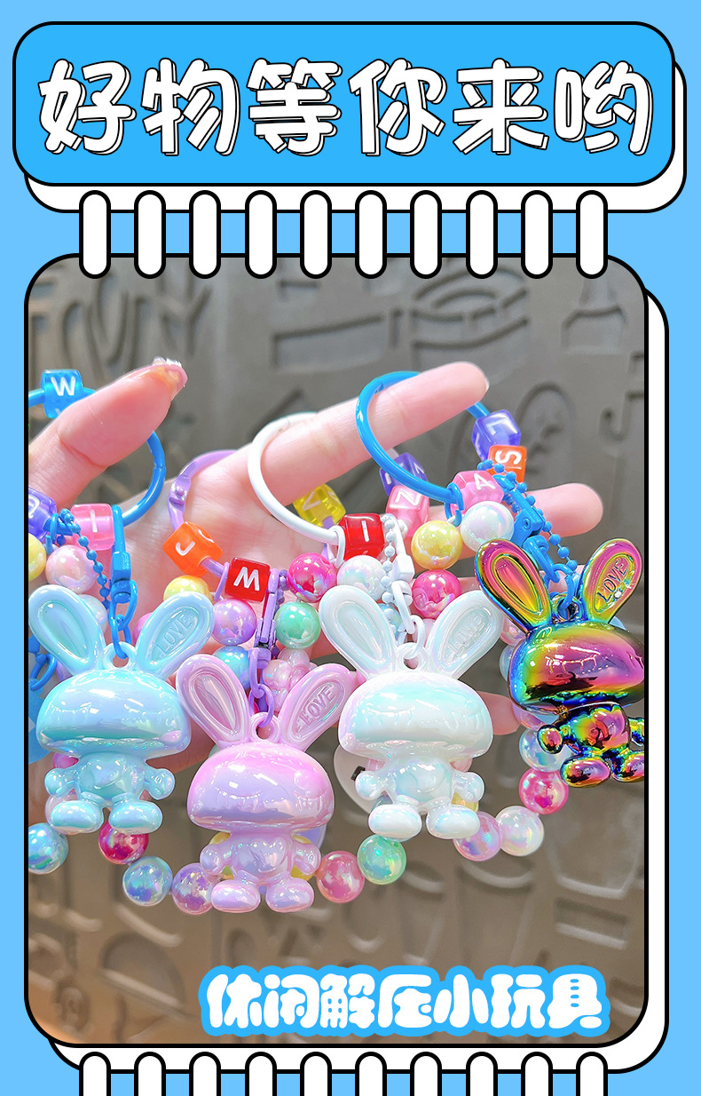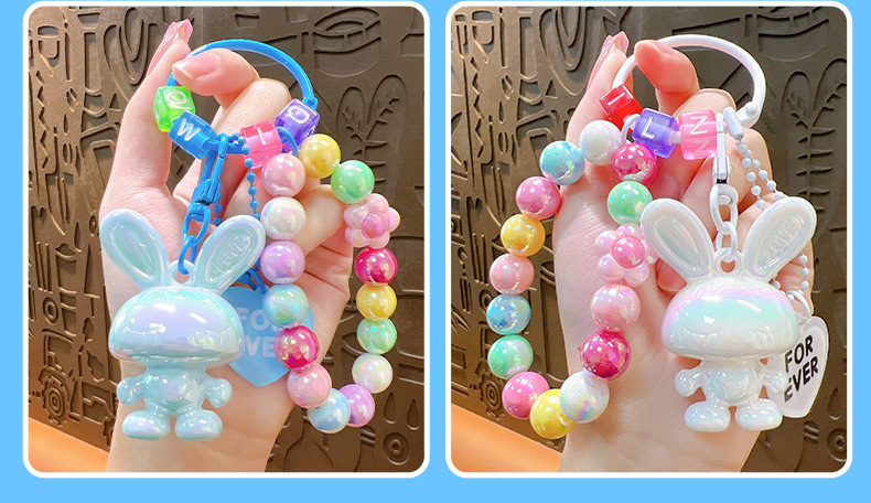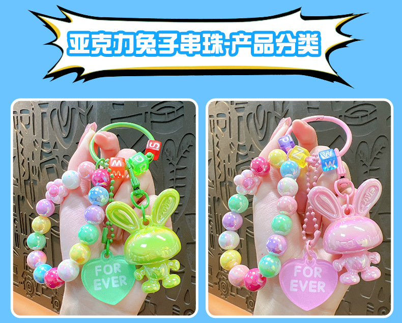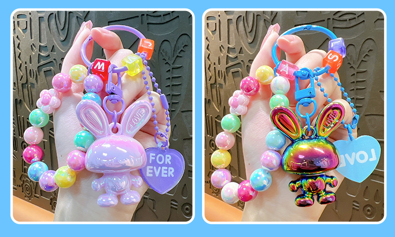 Cartoon Acrylic Rabbit Beaded Bracelet Female Pendant Creative Couple Cars and Bags Keychain Small Gift Wholesale