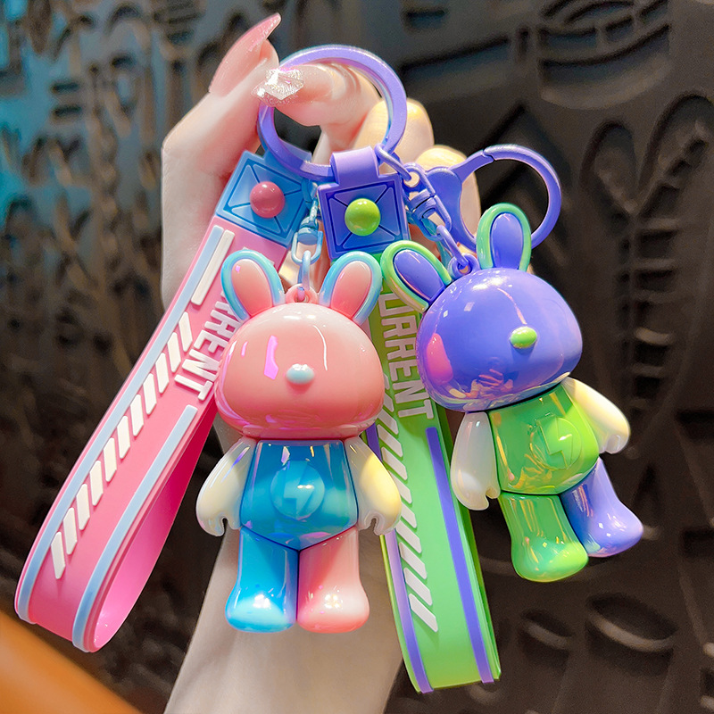 Couple Color Matching Cool Bear Keychain Creative Schoolbag Pendant Doll Boys Car Key Ornaments Small Gifts Wholesale