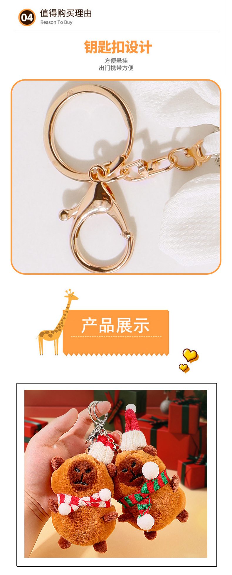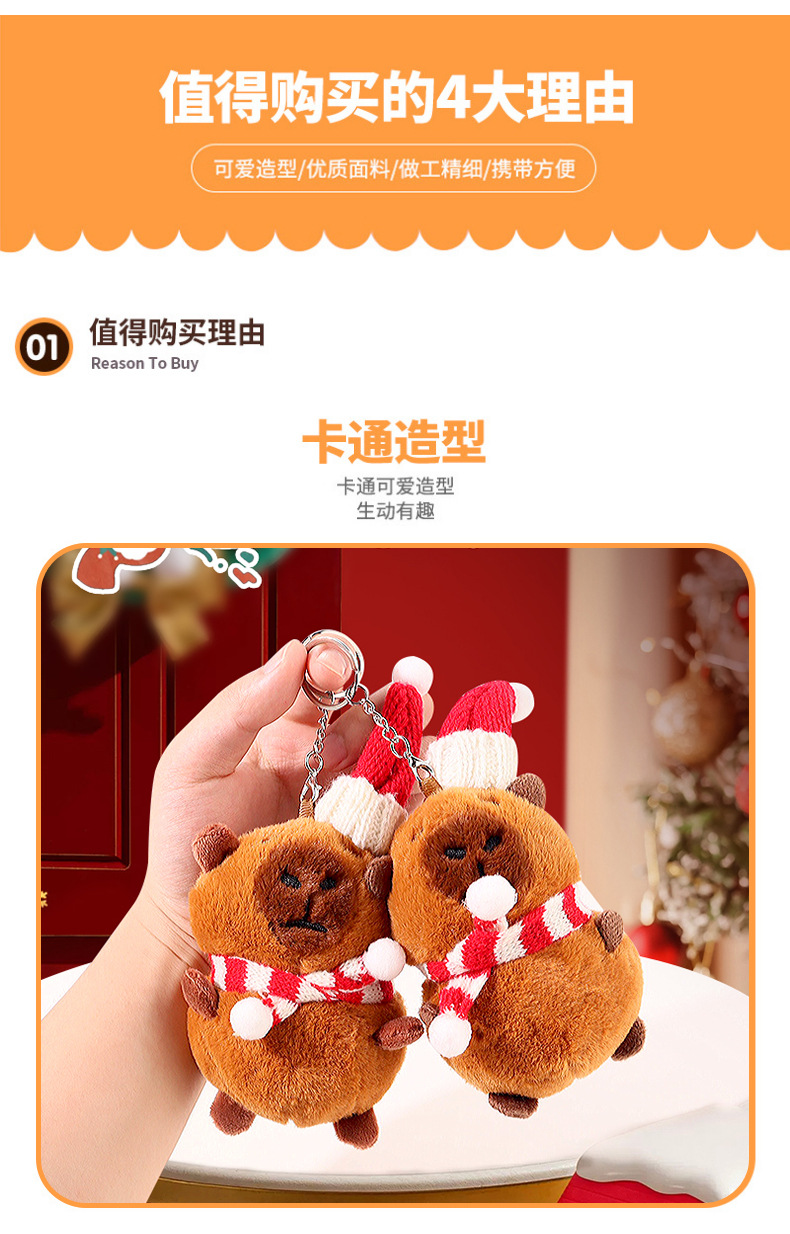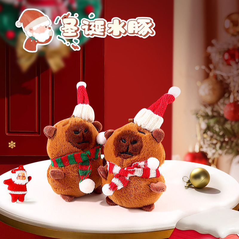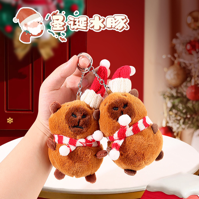 christmas capabala cute doll plush capybara keychain backpack hanging ornament pendant baby doll gift