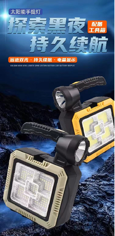 solar portable searchlight built-in kit outdoor led strong light high power usb rechargeable emergency light