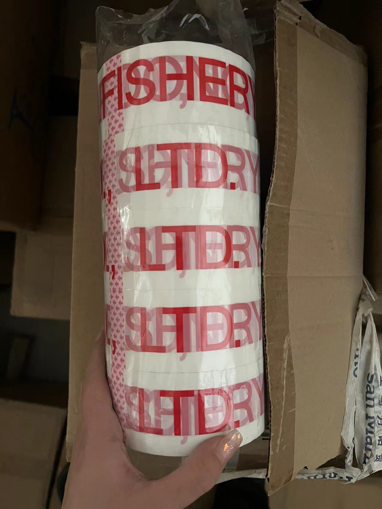color: red characters on white background 4.8cm * 100m; specification: printing tape