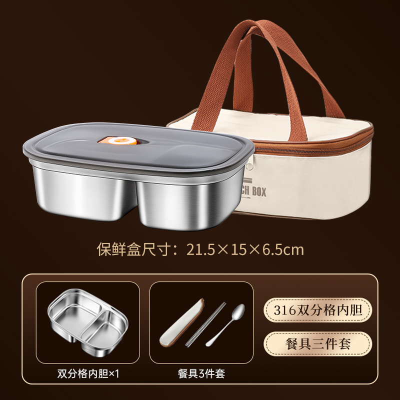 316 insulated lunch box-double layer [two grids/3400ml + three-piece set of tableware for free]]