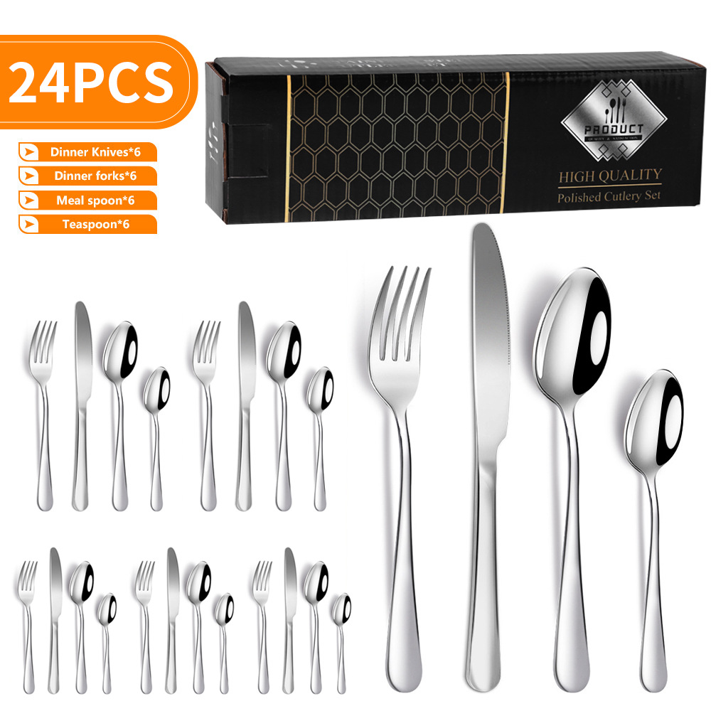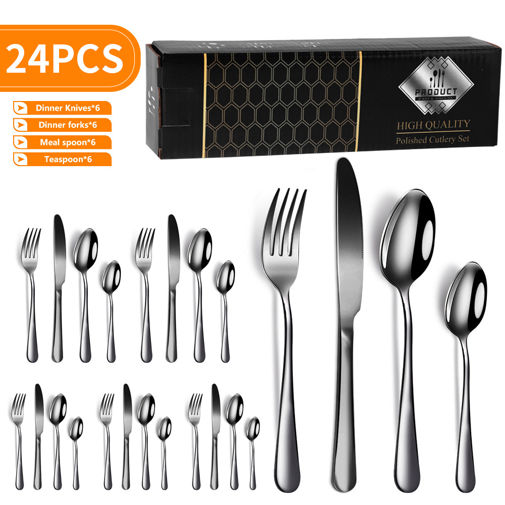 amazon cross-border stainless steel tableware set 1010 knife and fork 24-piece set western food/steak knife, fork and spoon gift gift box 中文版