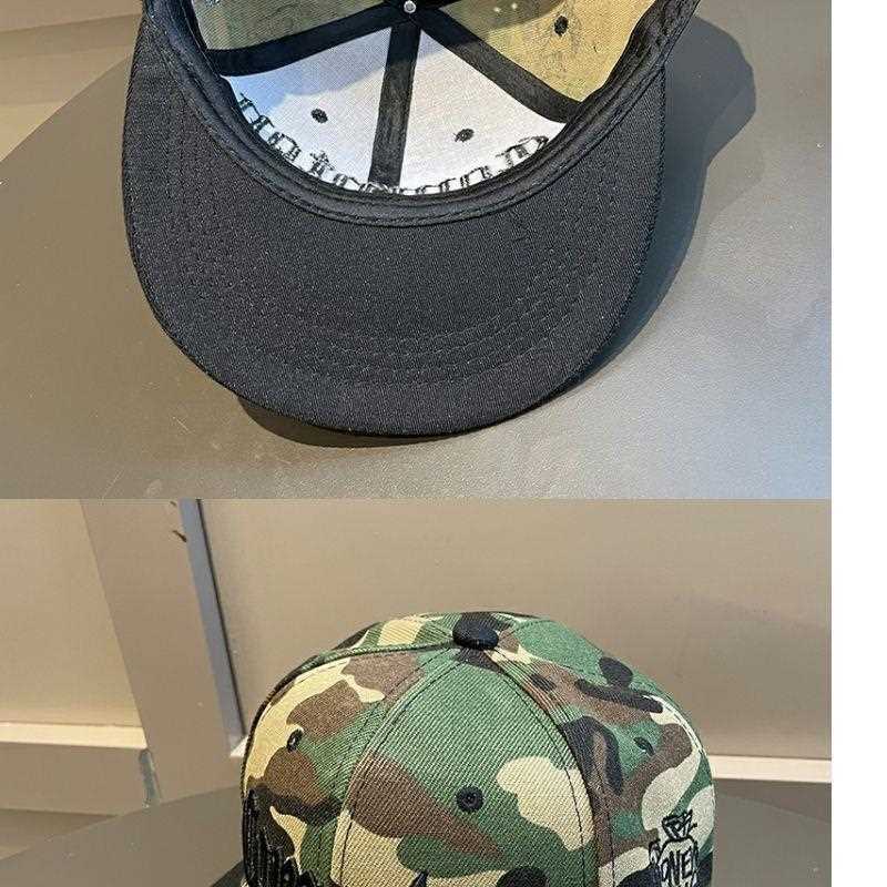 hat men's summer wide brim camouflage hip hop hat spring and autumn korean style trendy big head circumference flat brim baseball cap women's face-looking small