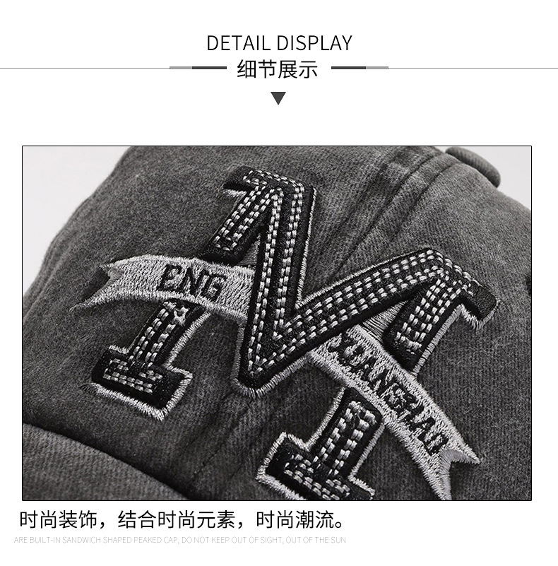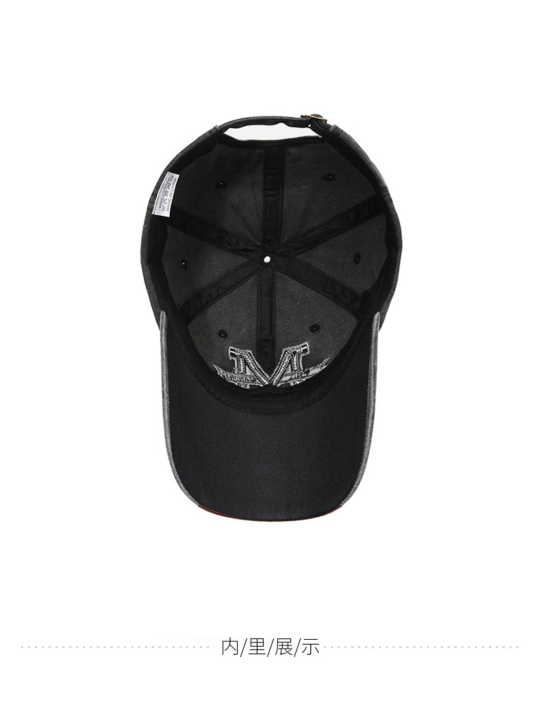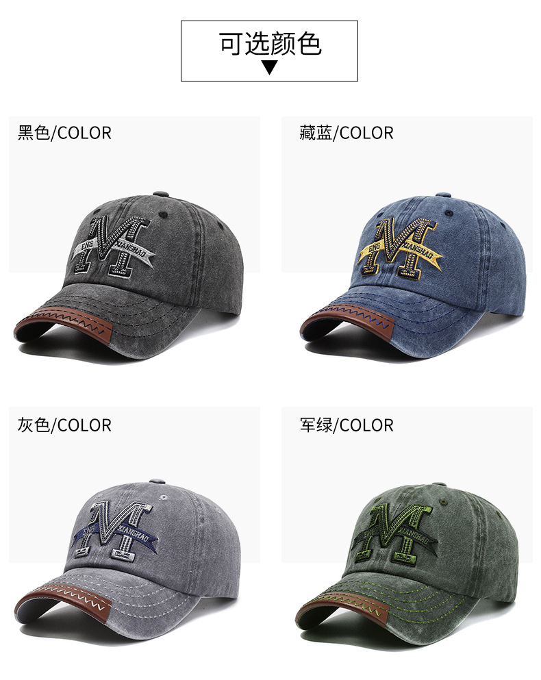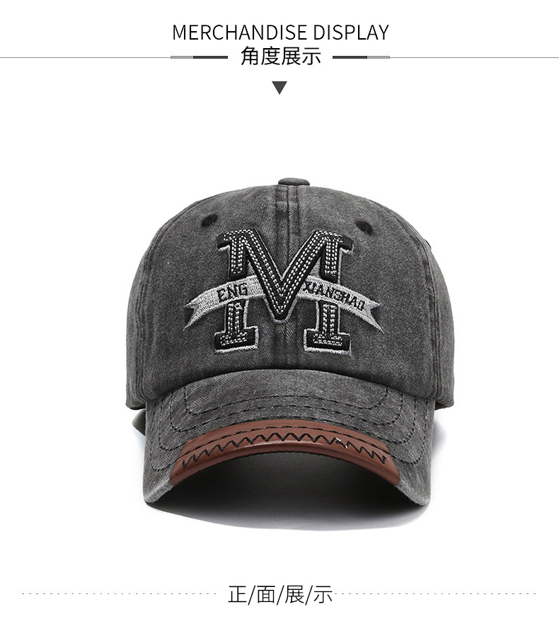 Spring and Autumn Retro Peaked Cap Men's and Women's Outdoor Sun Hat Washed Denim Distressed Letters M Embroidered Baseball Cap