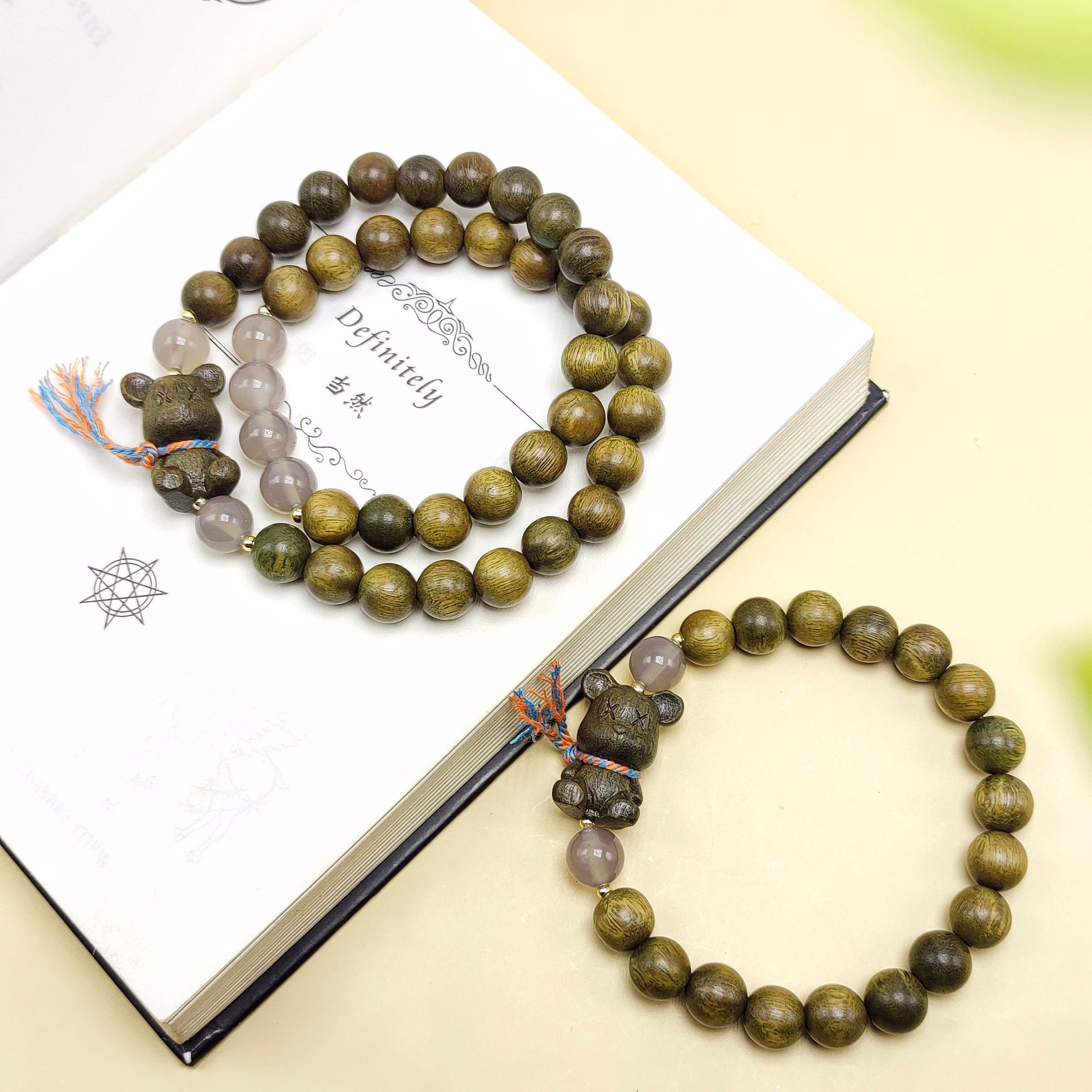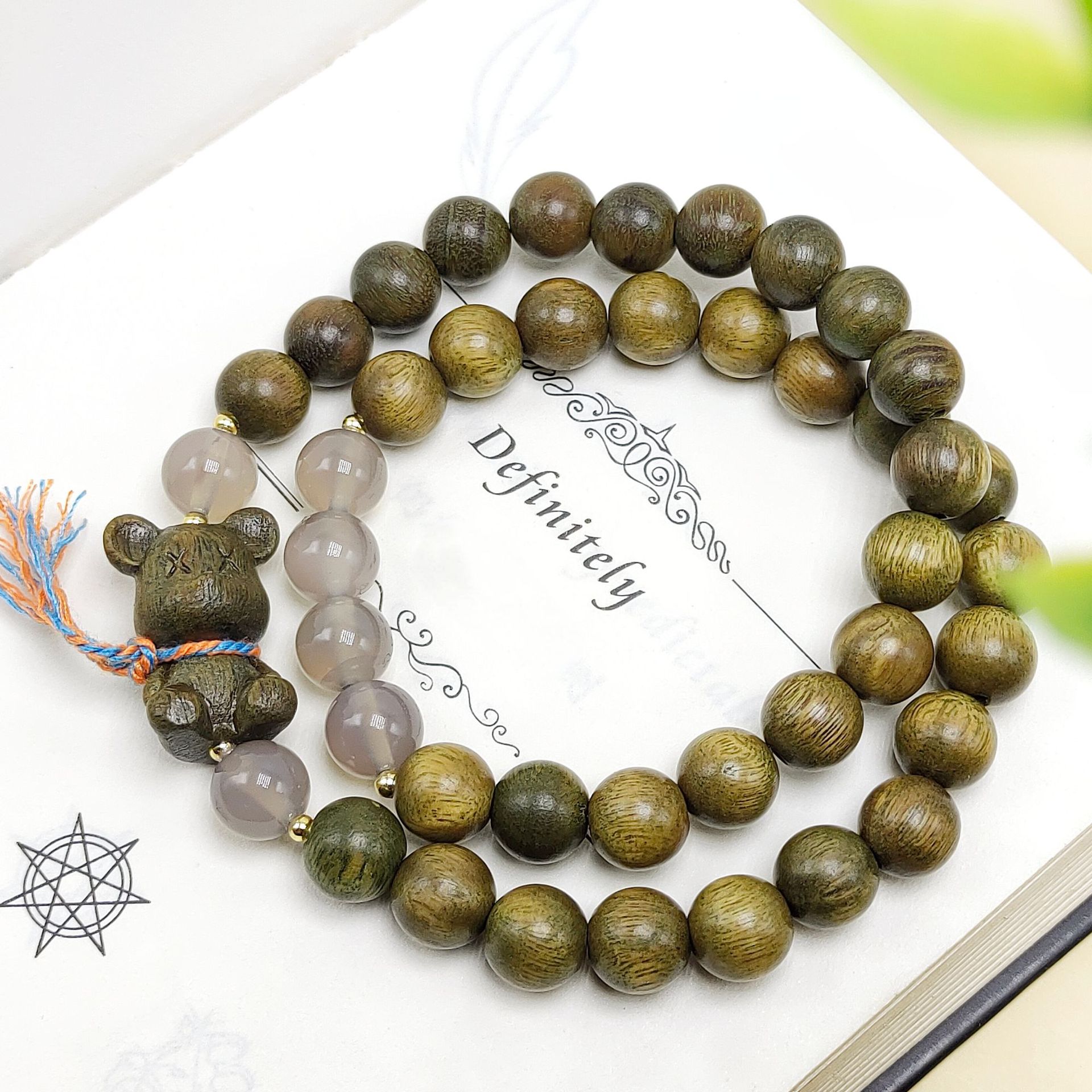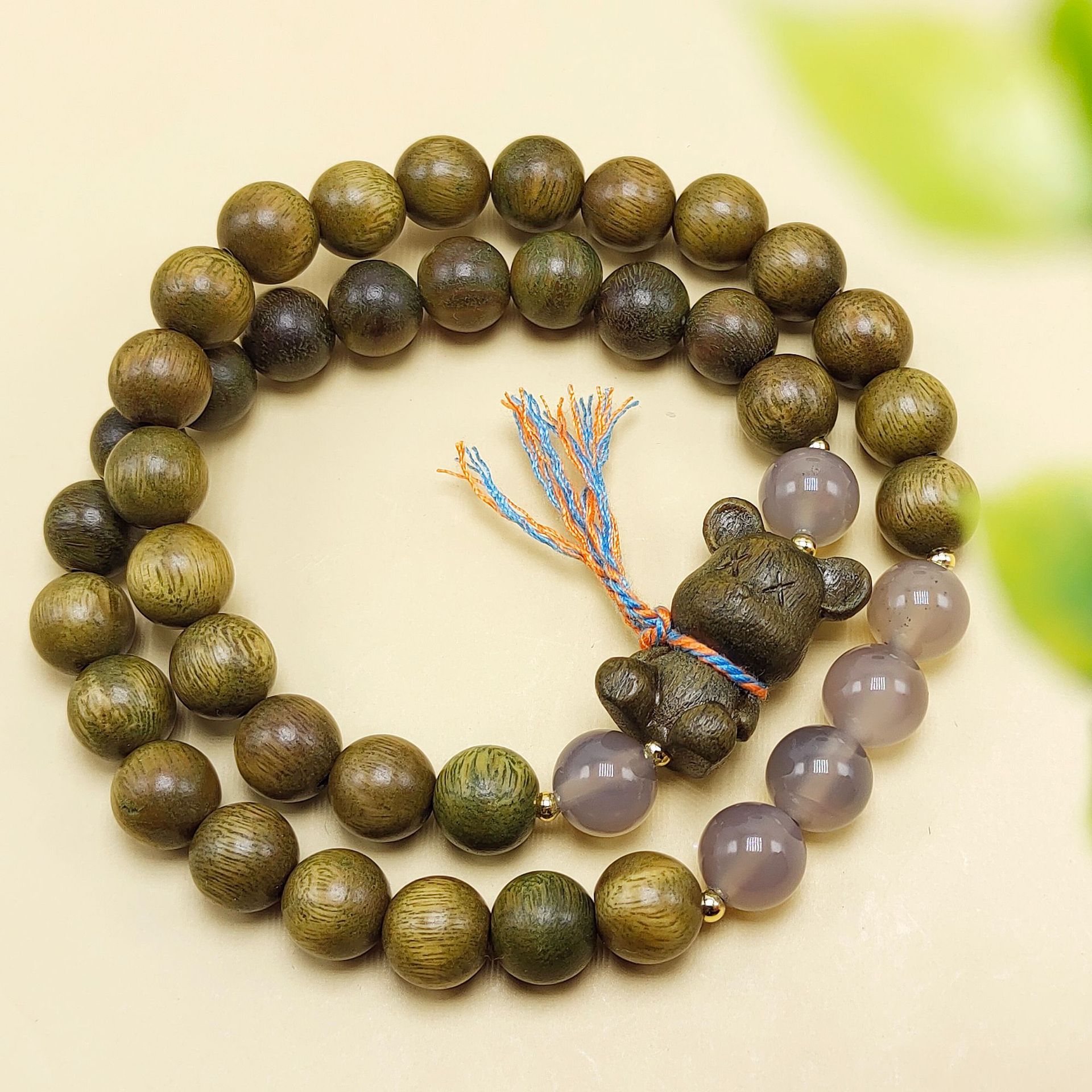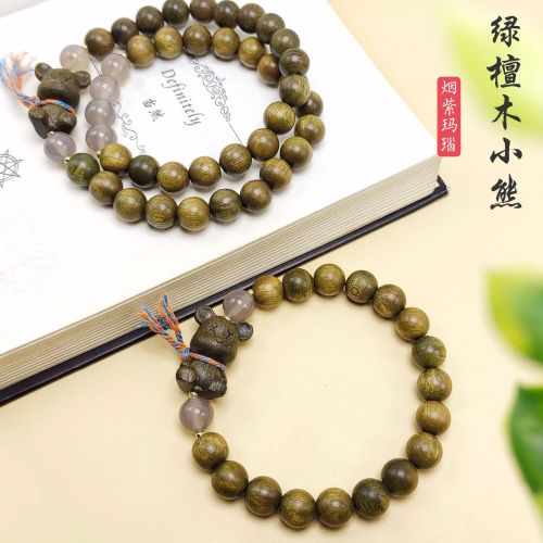 8mm green sandalwood violent bear double circle bracelet