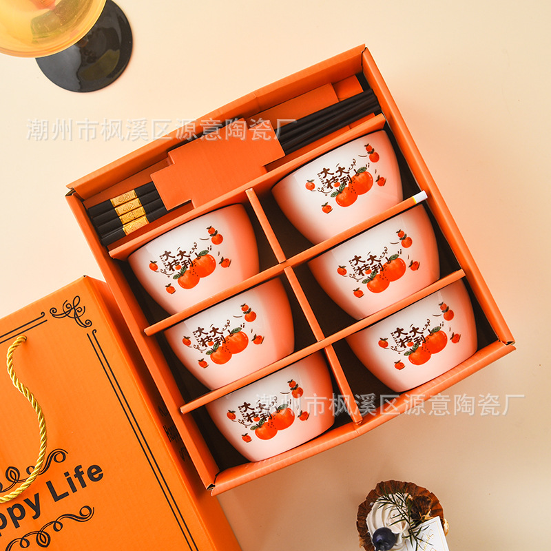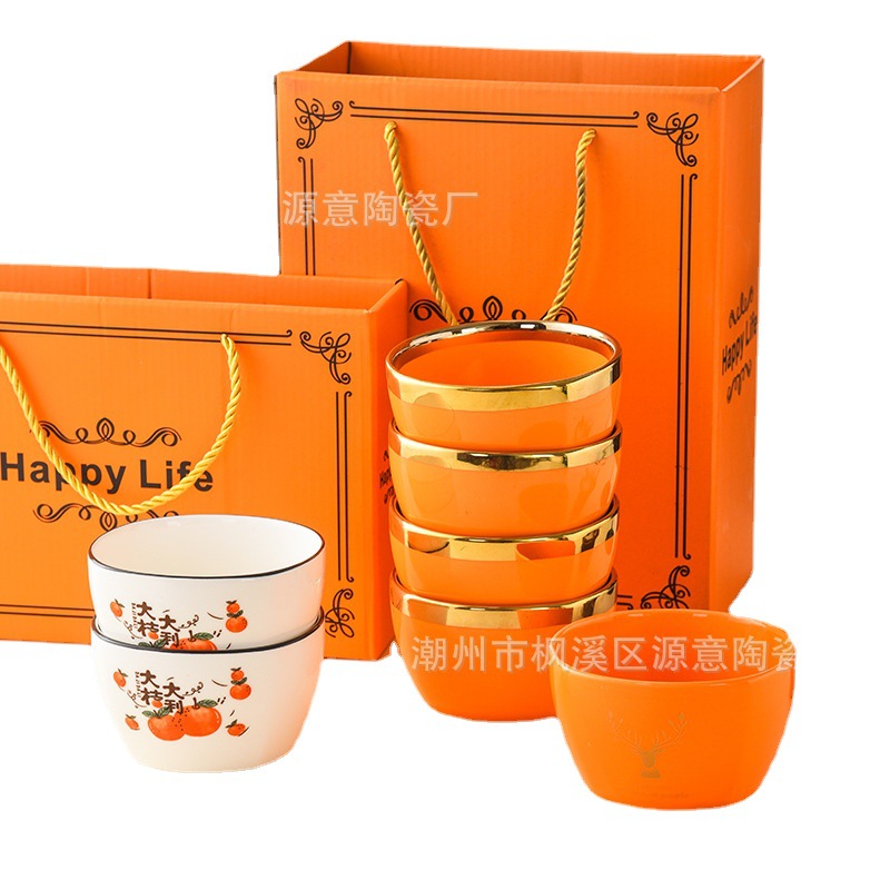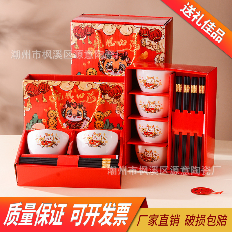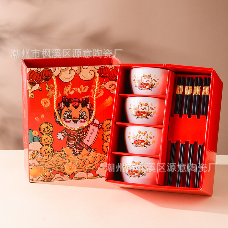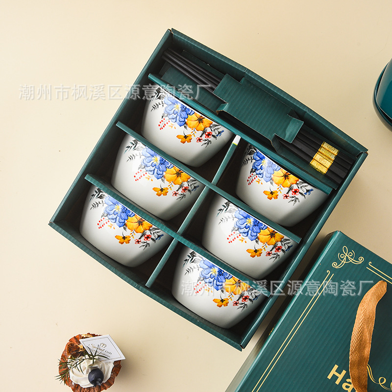 ceramic square bowl and chopsticks suit deer have you golden edge glazed bowl gift box tableware festival opening activity gift set bowl