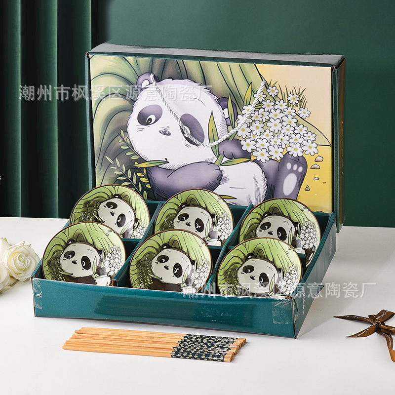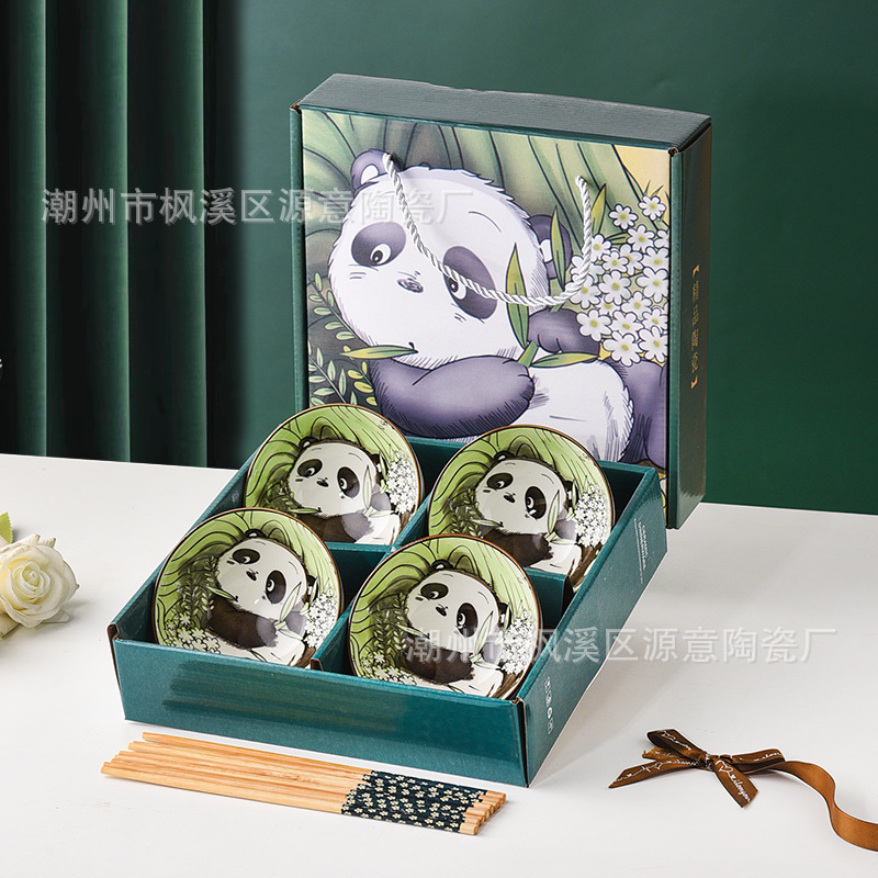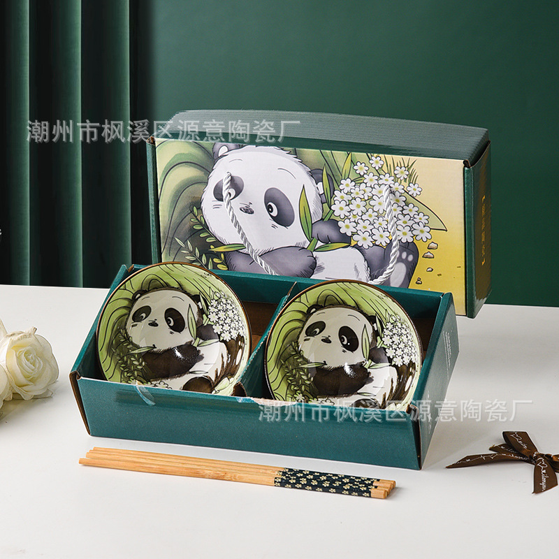 panda ceramic bowl cartoon bowl and chopsticks panda cutlery bowl sets opening event gift porcelain bowl set bowl
