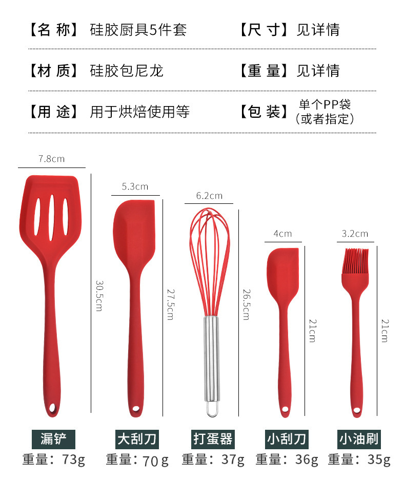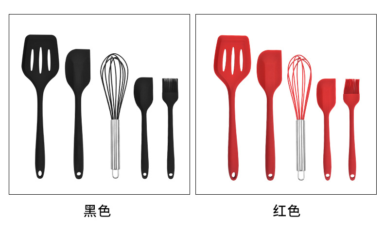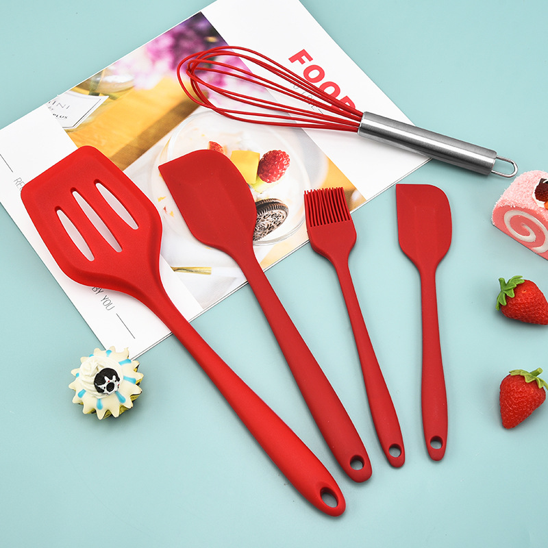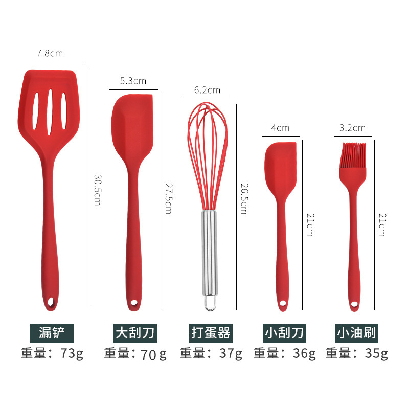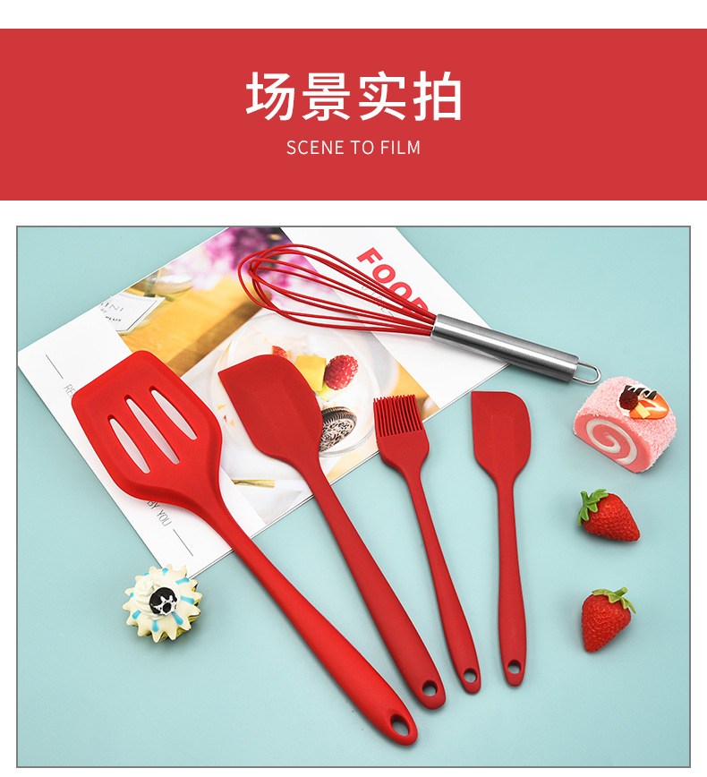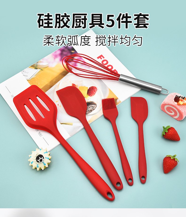 silicone kitchen five-piece set spatula scraper egg beater food clip high temperature resistant new product promotion 中文版