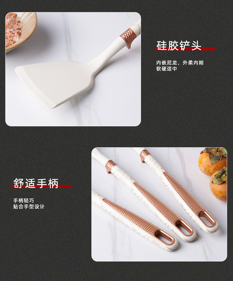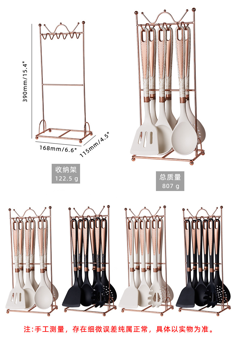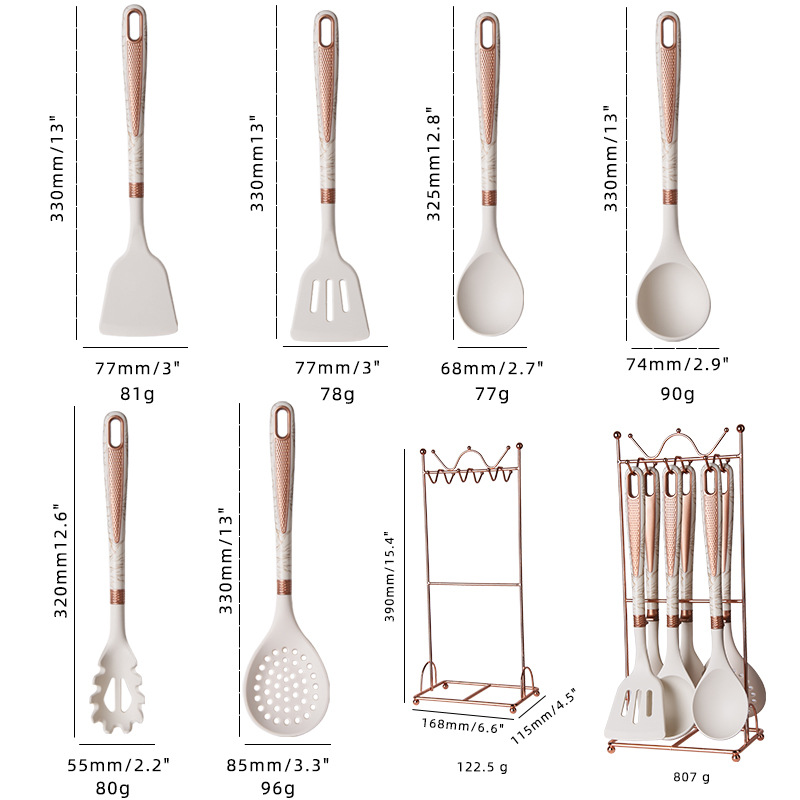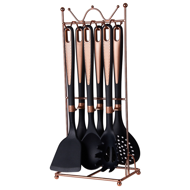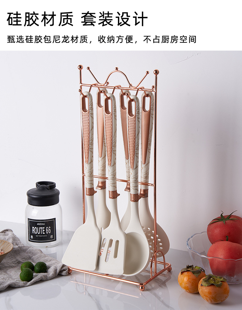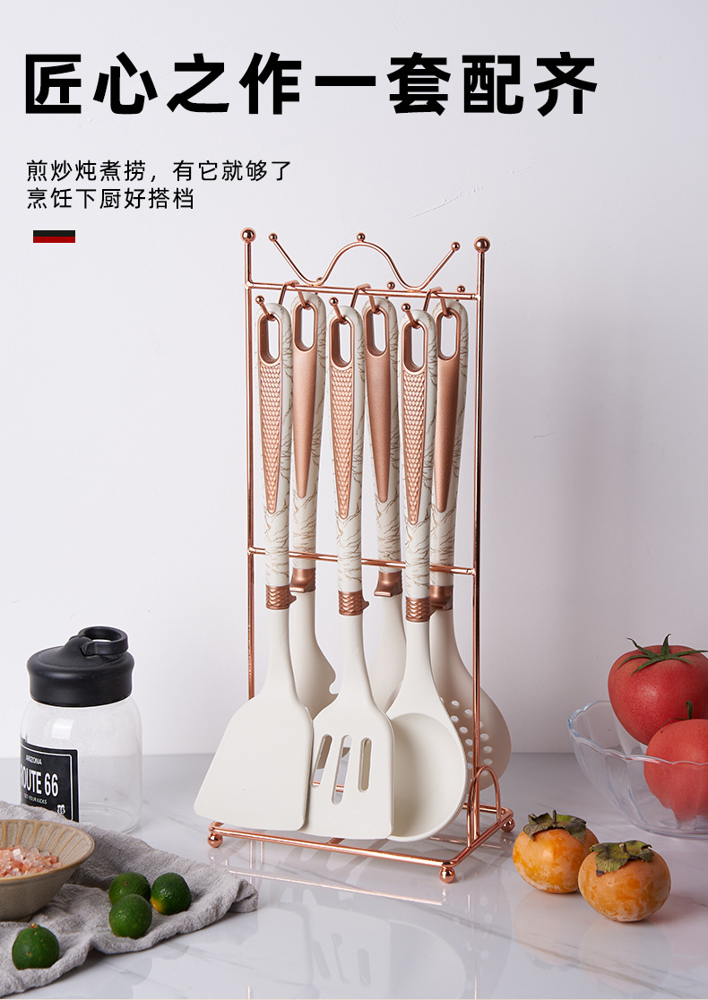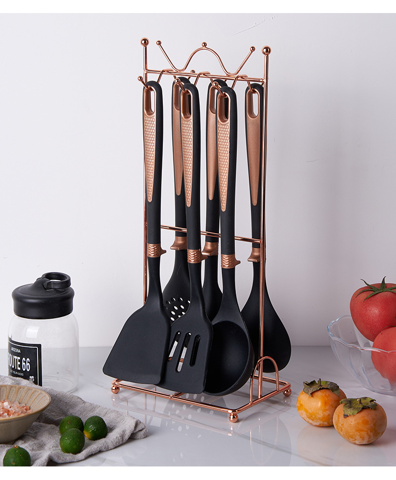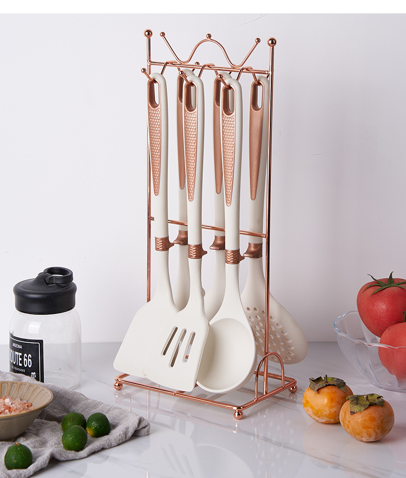 new silicone 7-piece kitchen ware set non-stick pan with storage rack cooking spoon and shovel set soup spoon light luxury silicone spatula