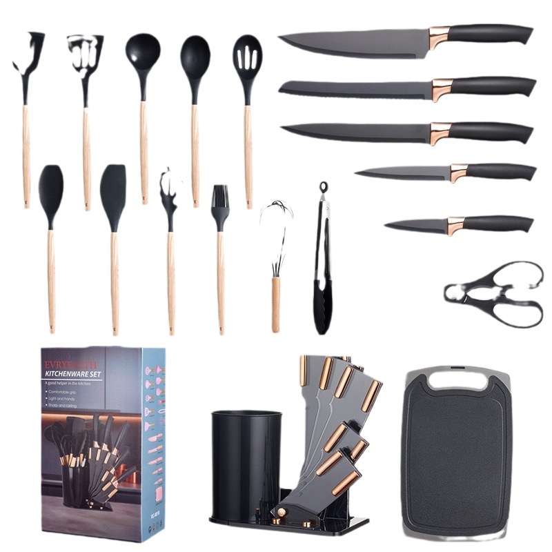 acrylic silicone kitchenware 19-piece knife set cutting board combination set storage bucket kitchen knife kit