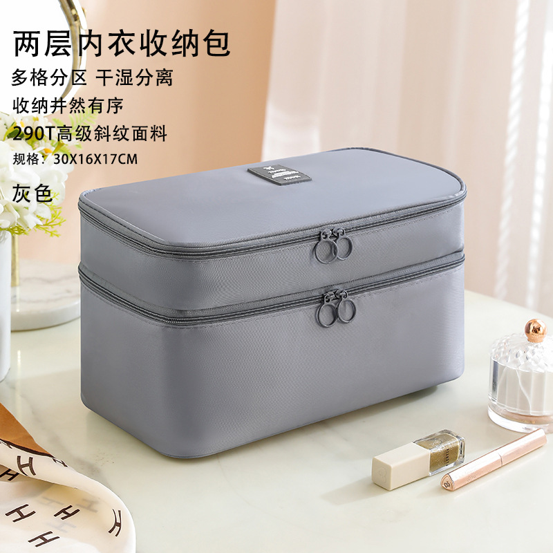 gray two-layer underwear storage bag