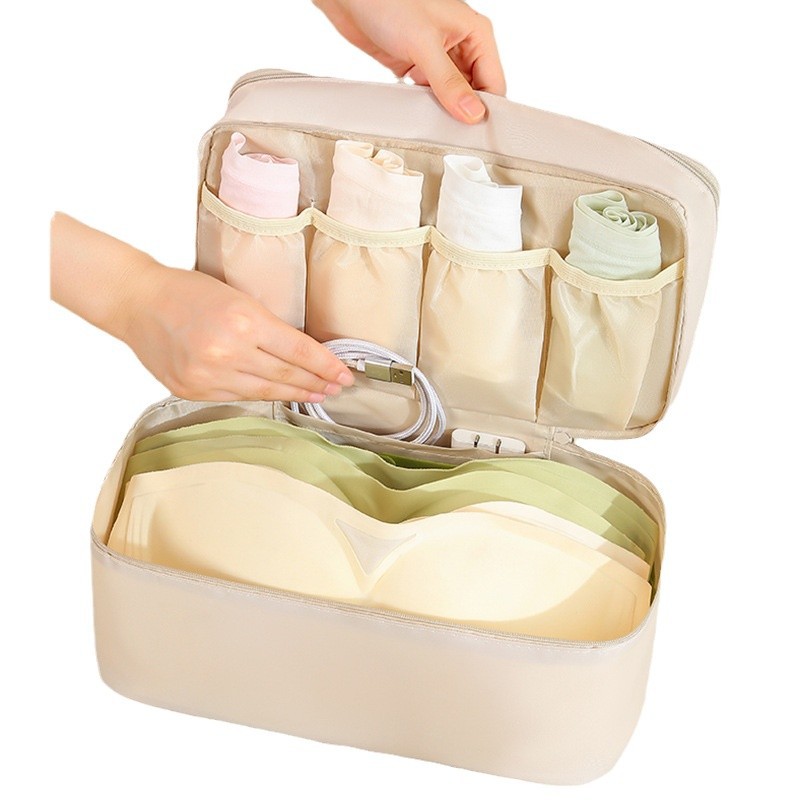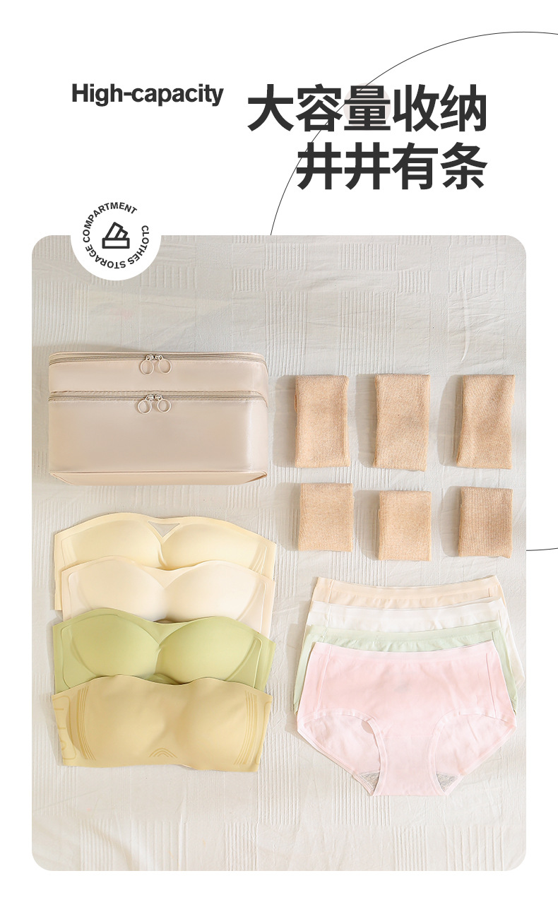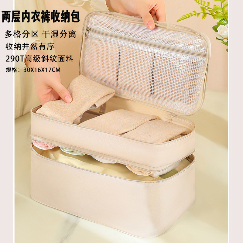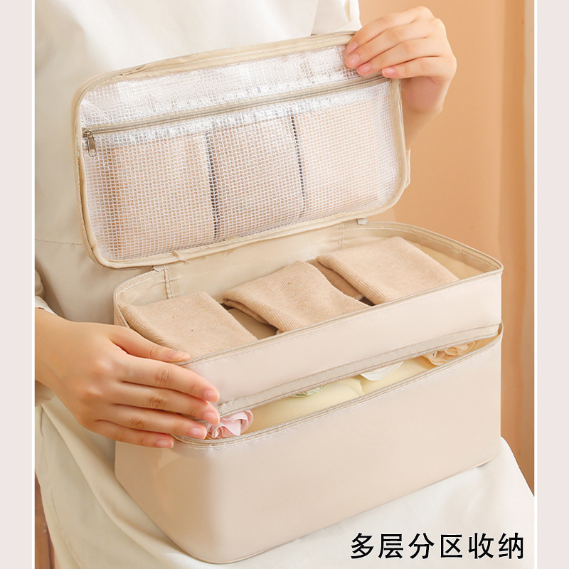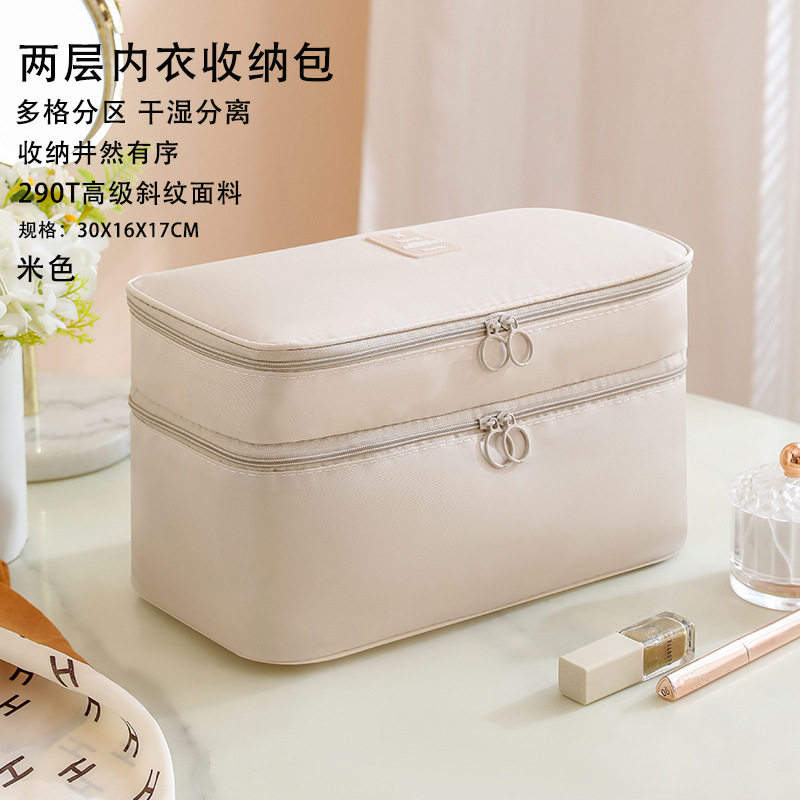 beige two layers underwear storage bag