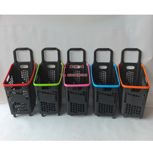 Plastic shopping basket with wheels for supermarket
