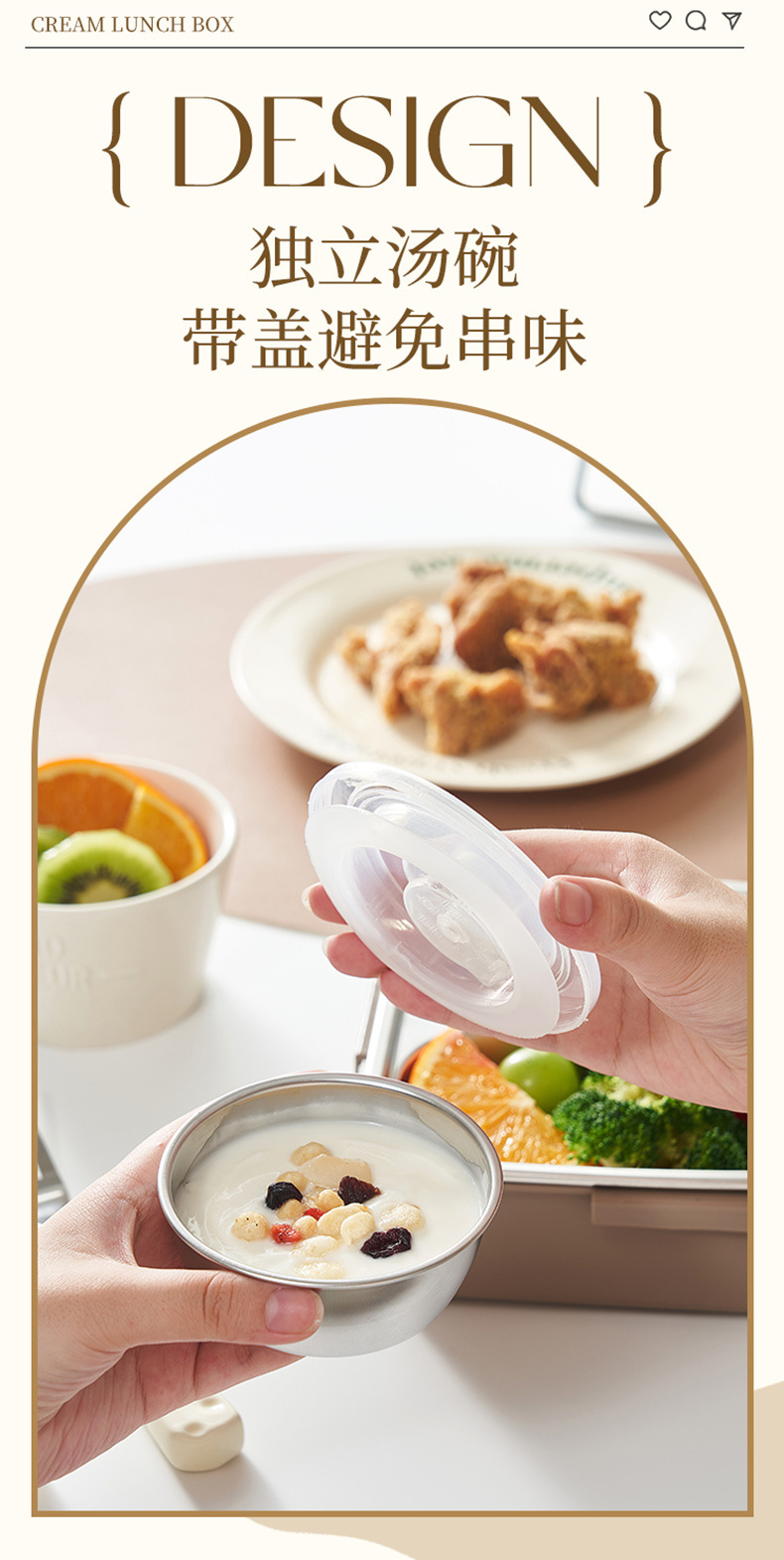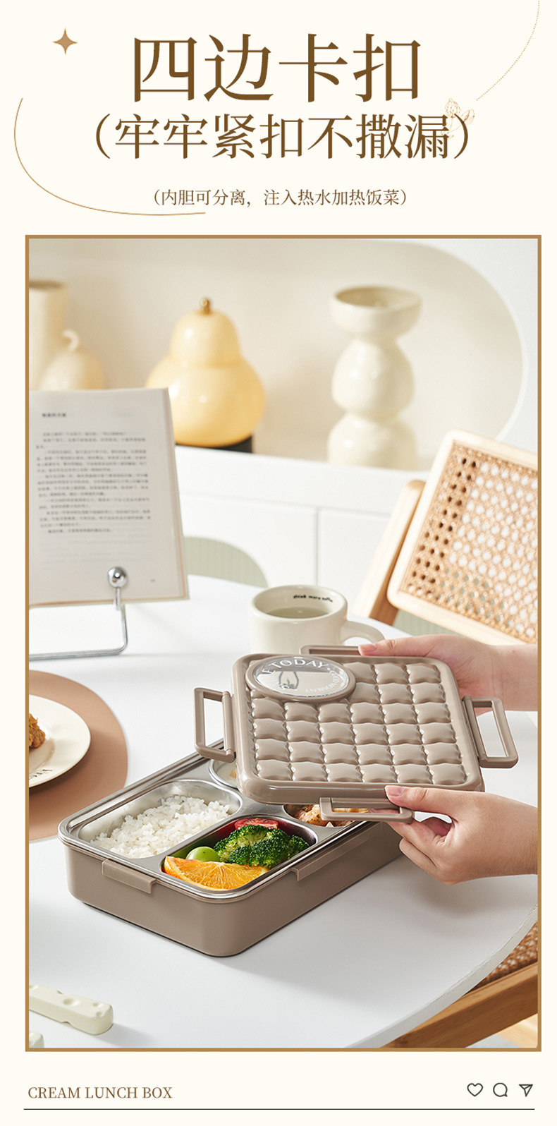 4. The detachable inner container can be filled with hot water for heating.
