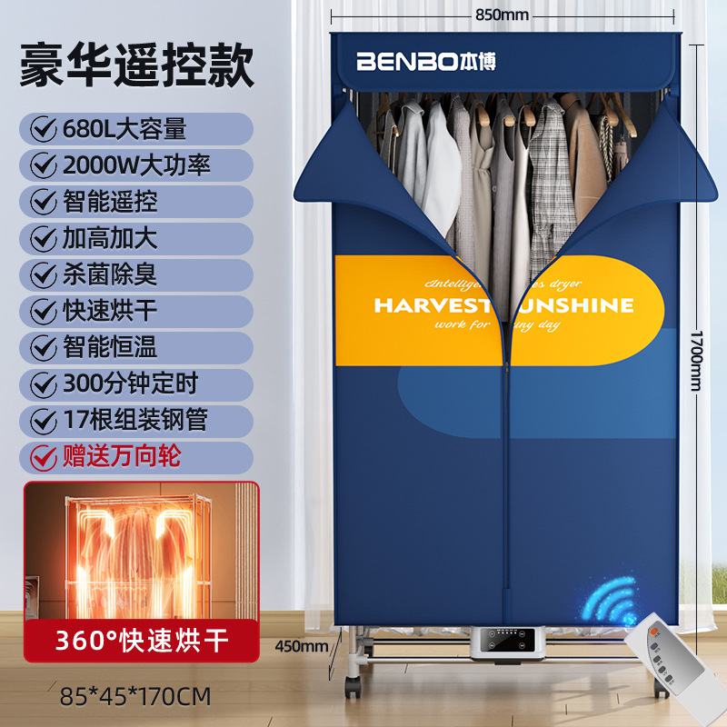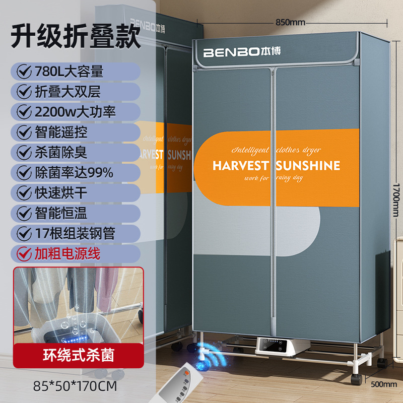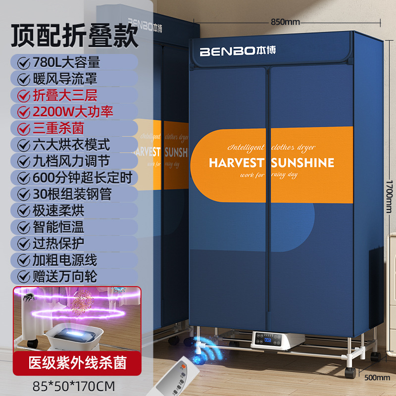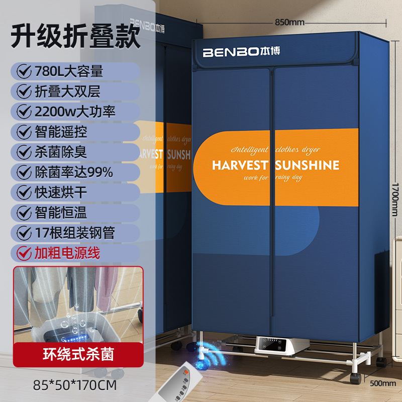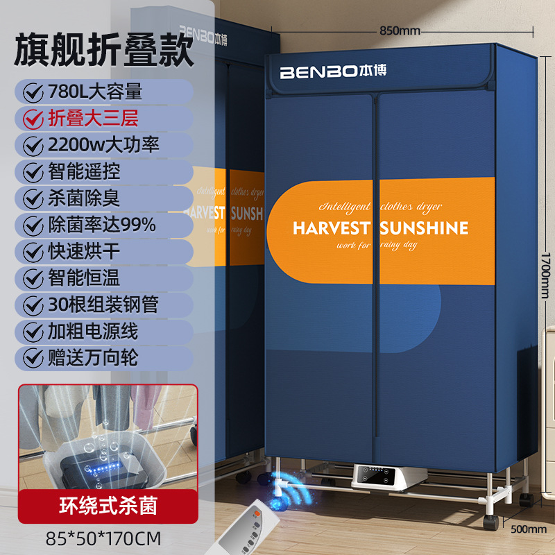 [dark blue-capacity 780l-remote control folding model-three layers] fast drying + intelligent constant temperature + gift universal wheel