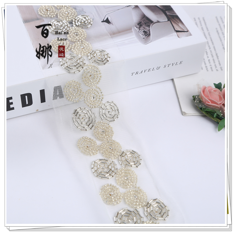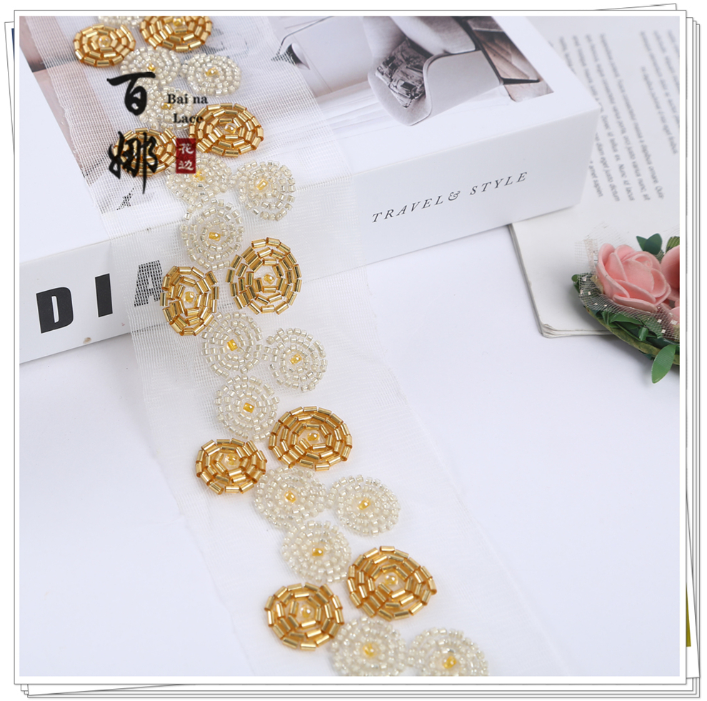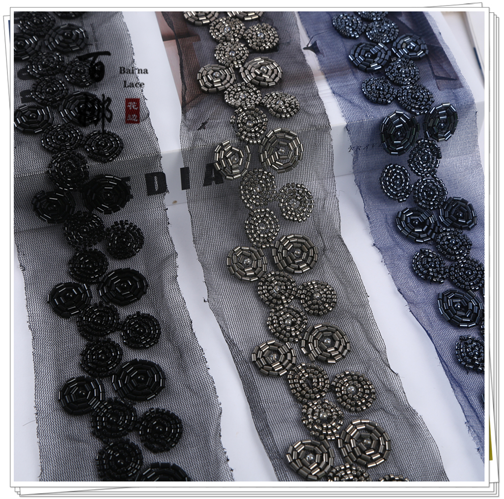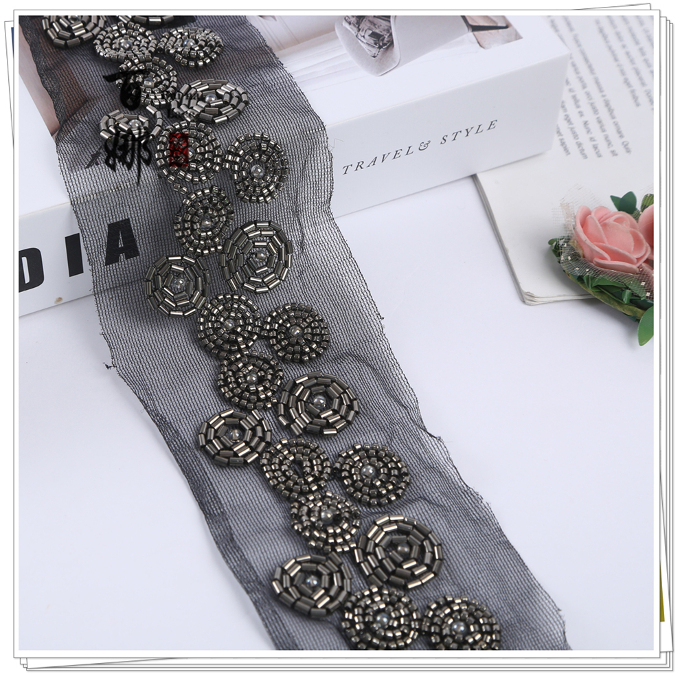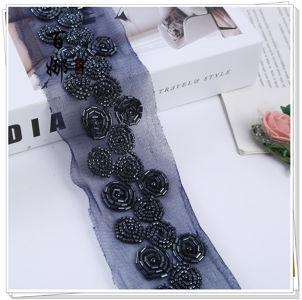 Product Name: Net Shade Bead Pipe Bead Machine Embroidery Accessory Stage Dress Open Jacket Hanfu Collar Headscarf Decorative Fabric