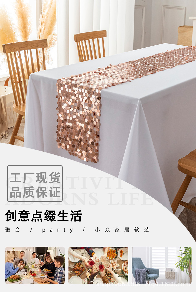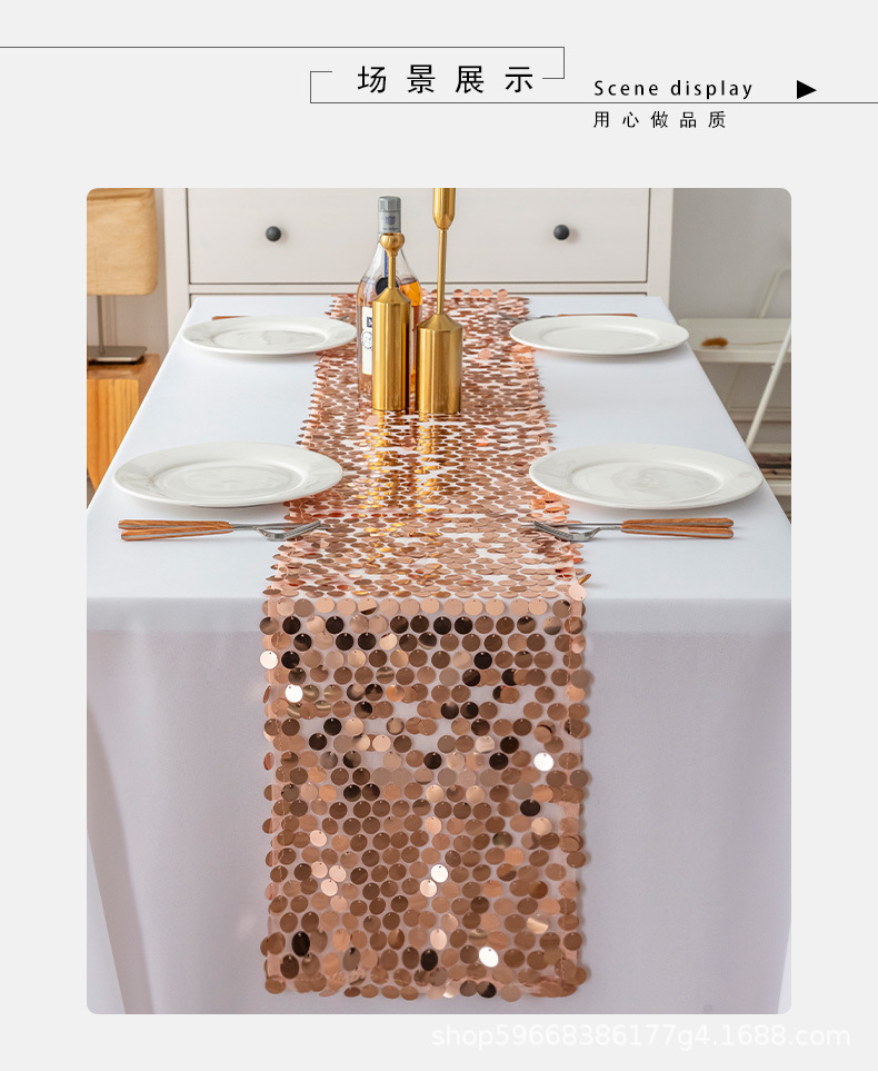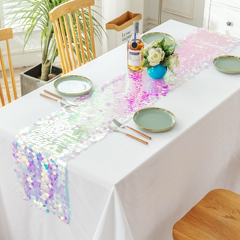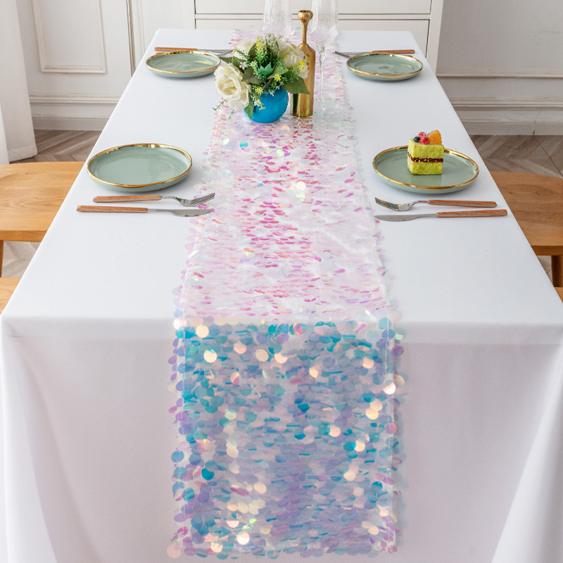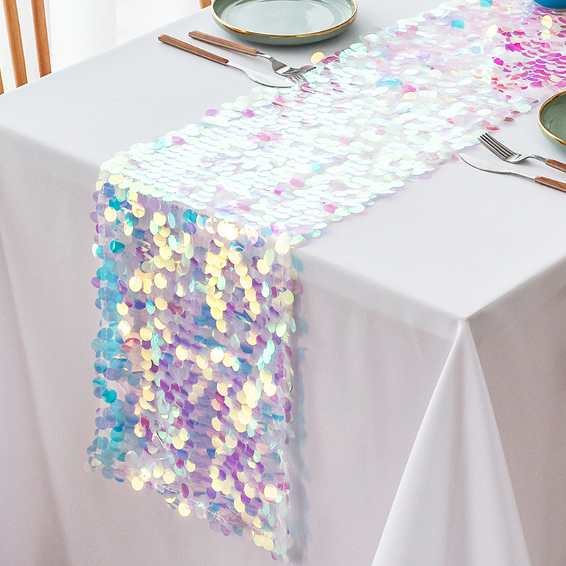 cross-border foreign trade wholesale big sequin table flag wedding european table runner solid color wedding table runner in stock wholesale 中文版