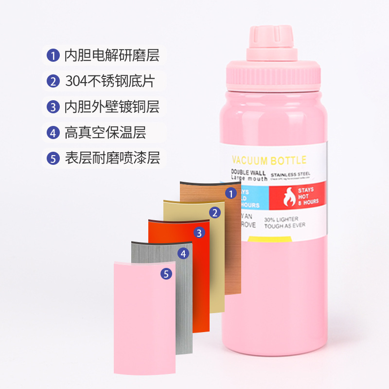cross-border 304 stainless steel vacuum cup outdoor portable large capacity sports kettle home office tea strainer space pot