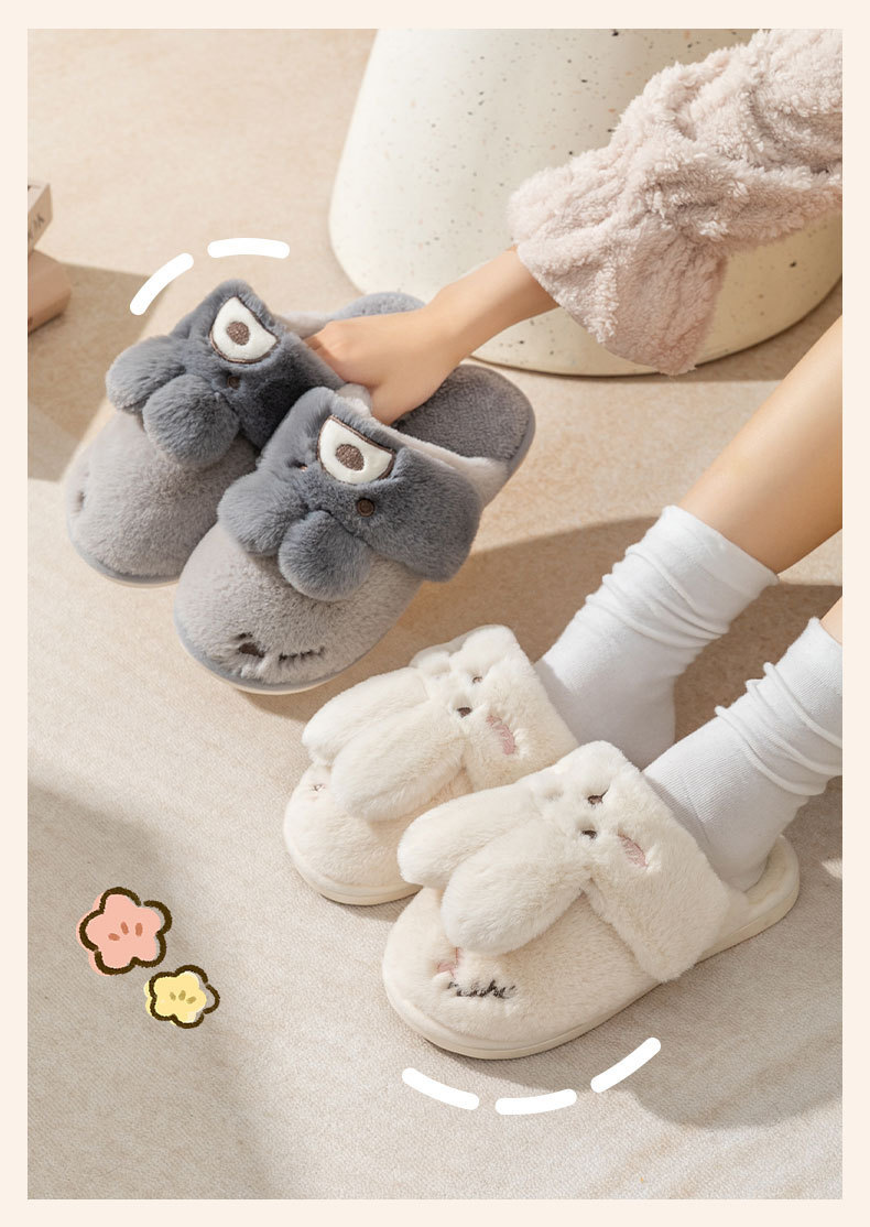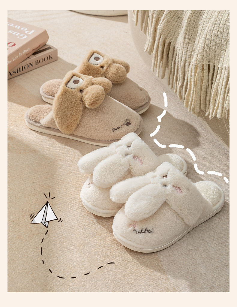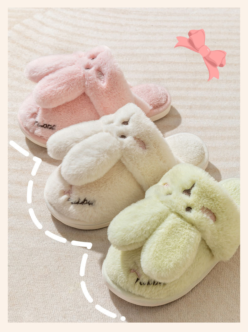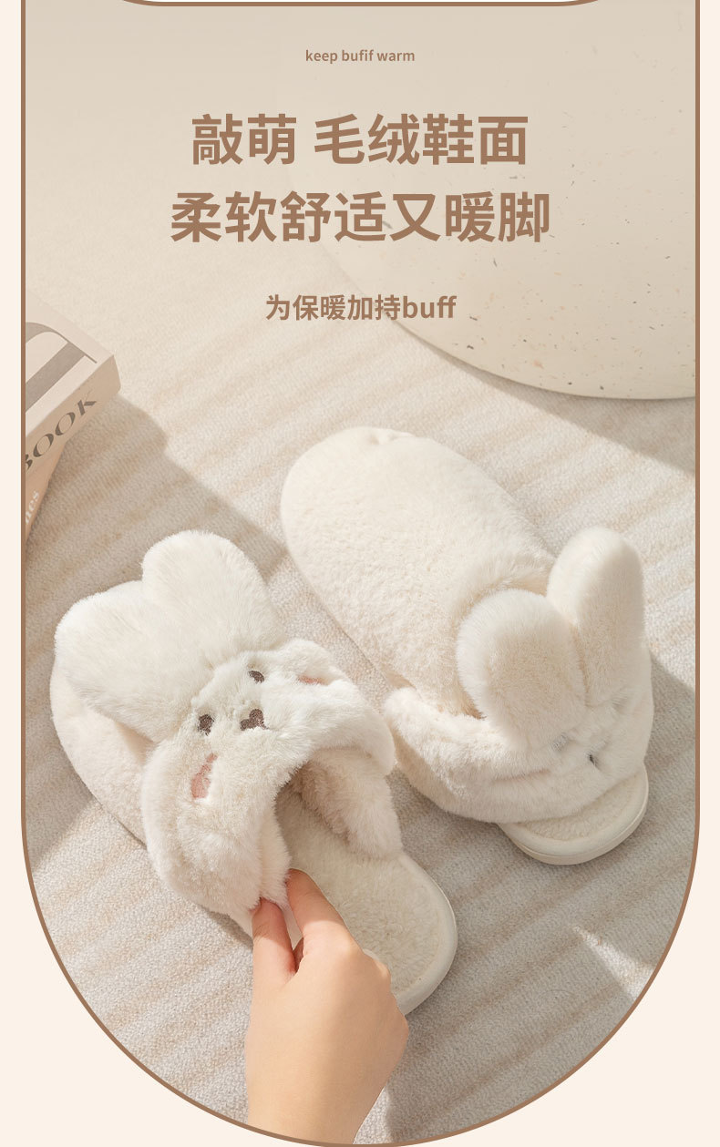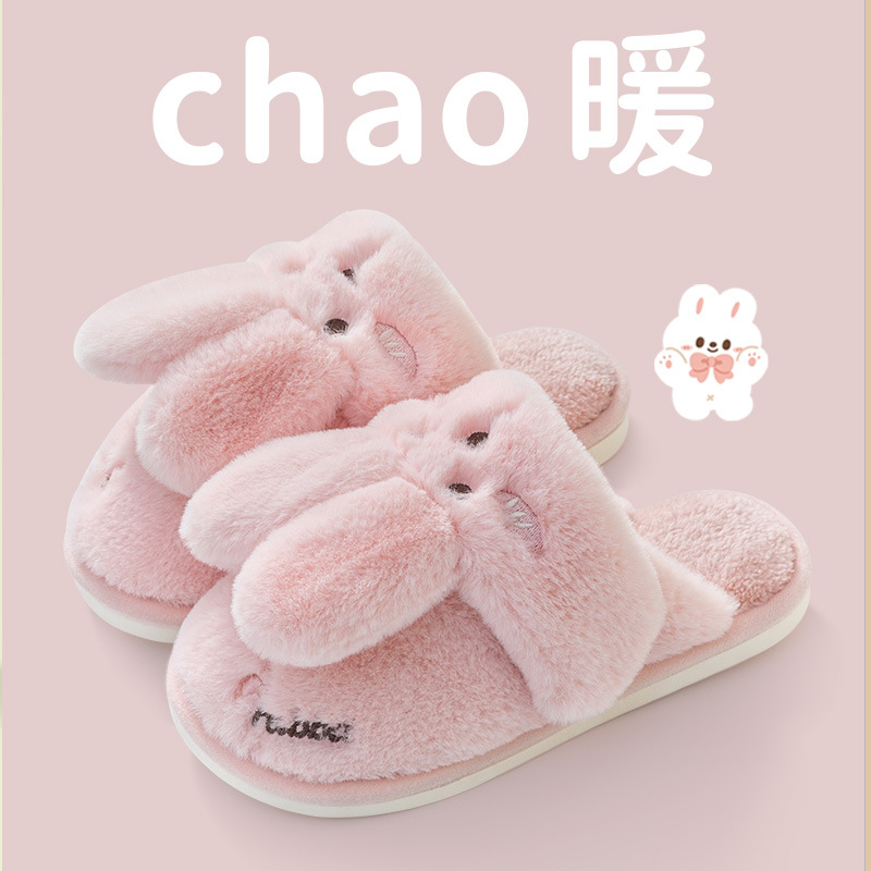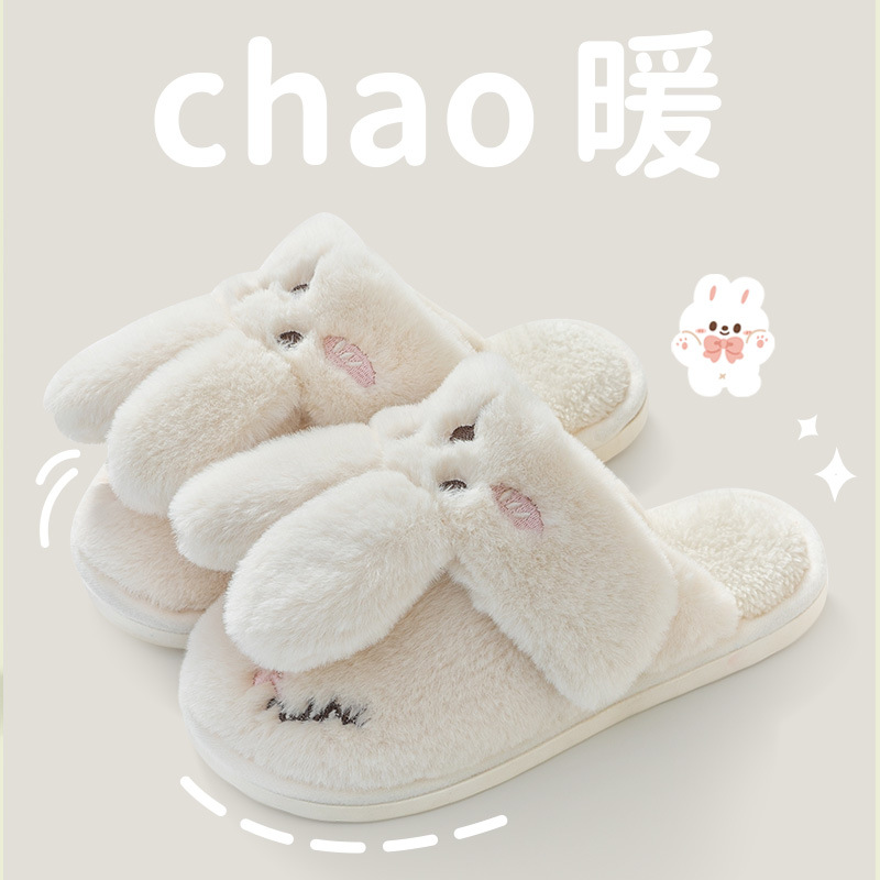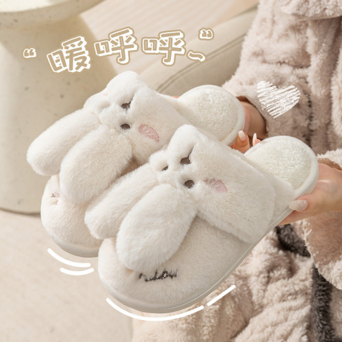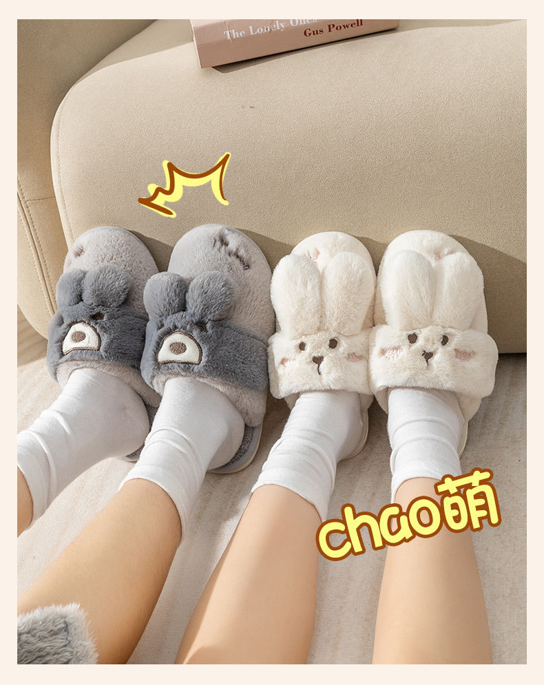 2024 new women's shoes fur cotton slippers couple plush rabbit outdoor home slippers 中文版