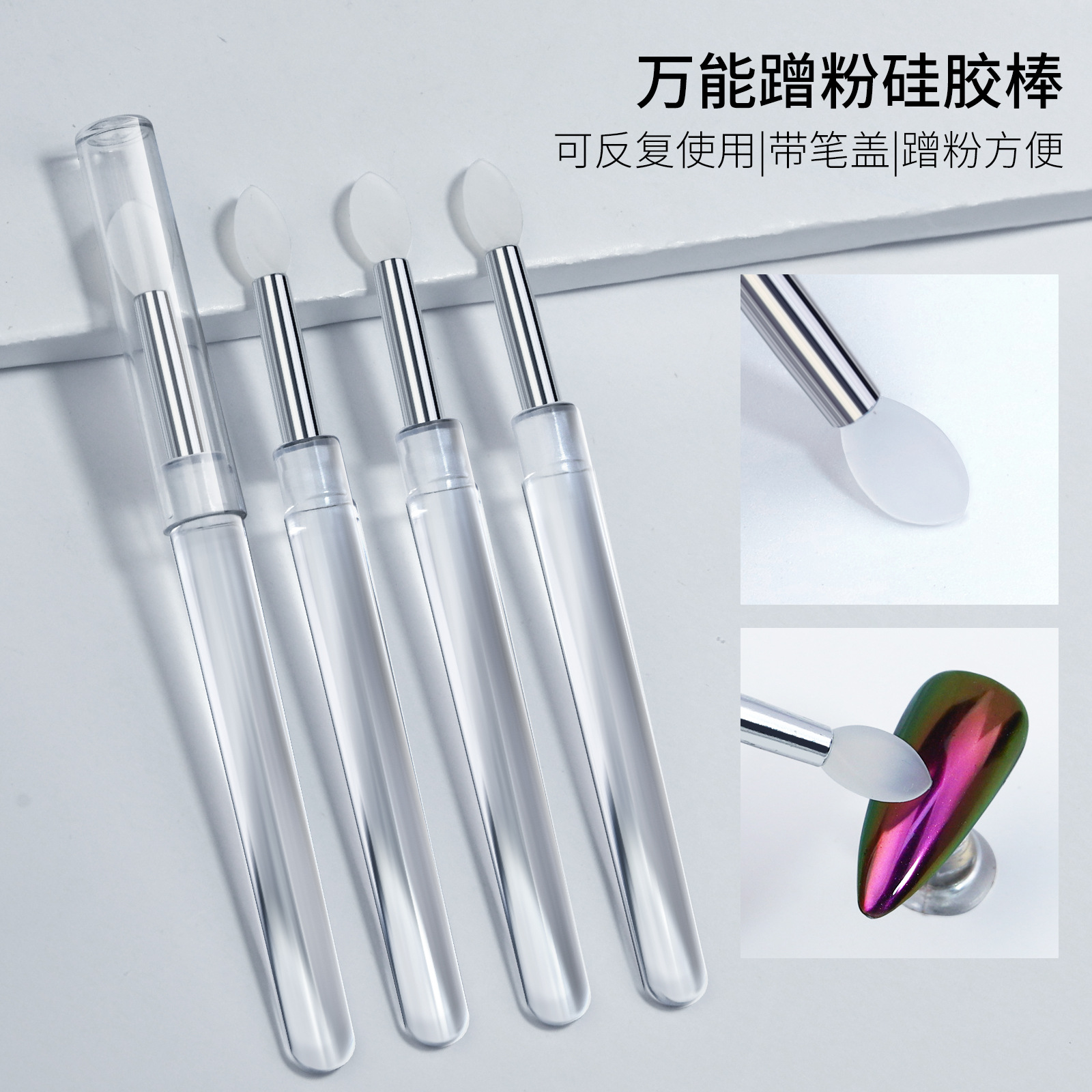 nail transparent silicone stick magic mirror effect powder aurora powder smear stick rub powder sequin eyeshadow portable and versatile brush wholesale