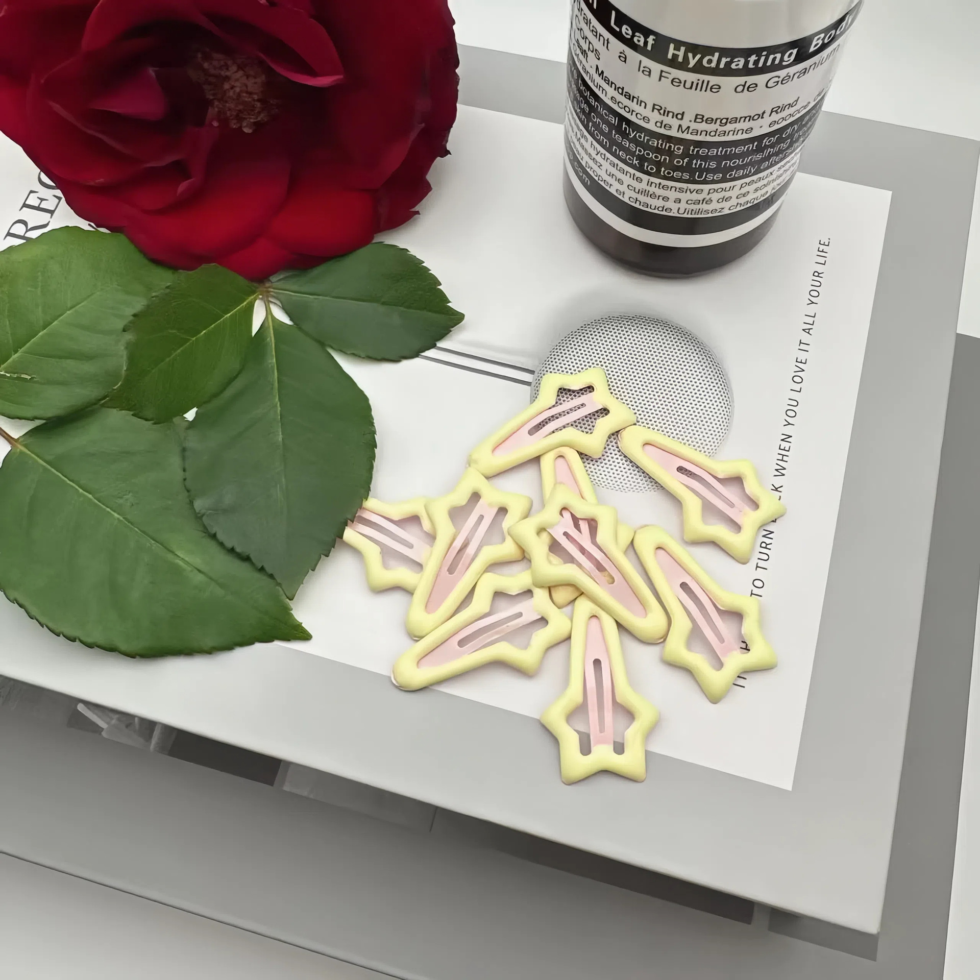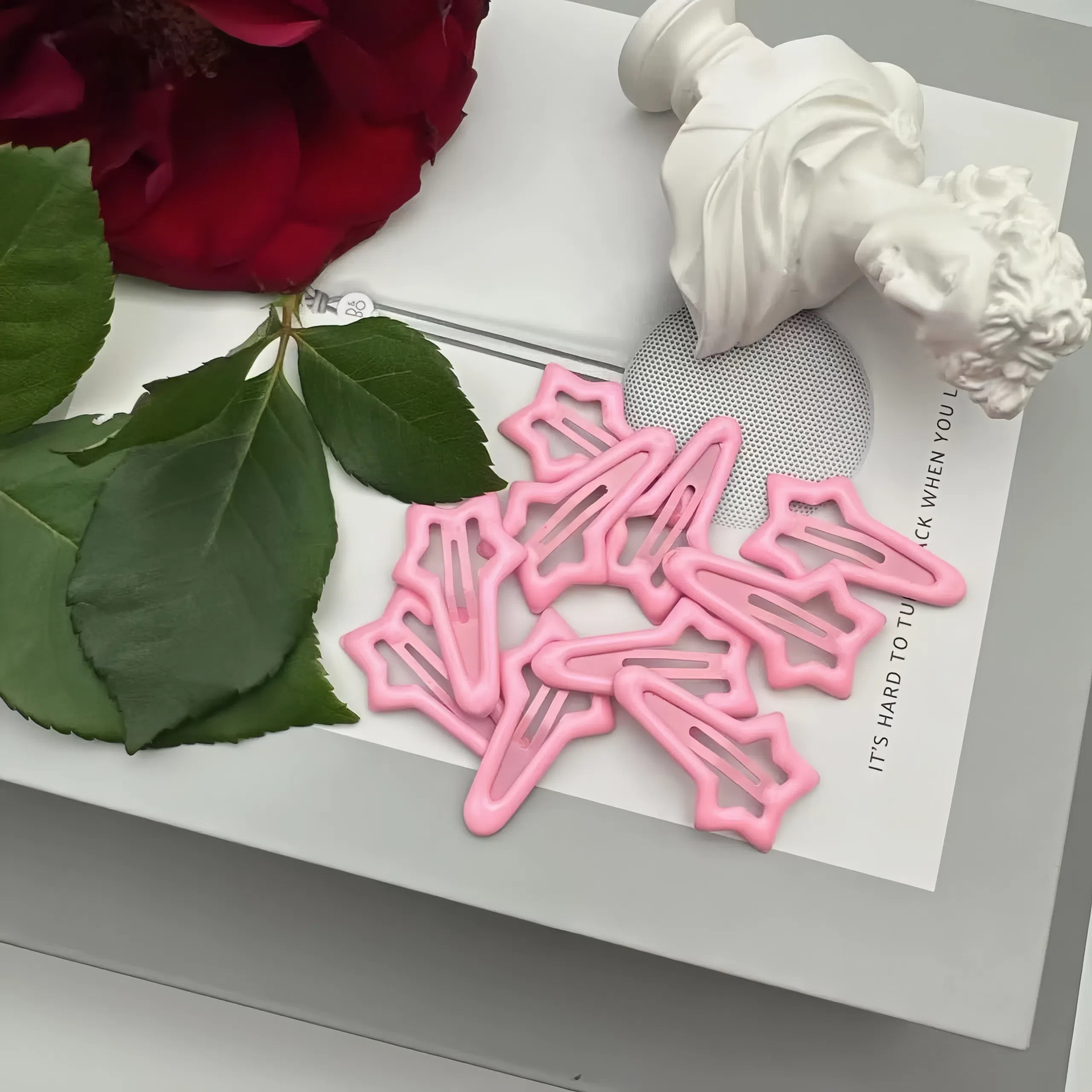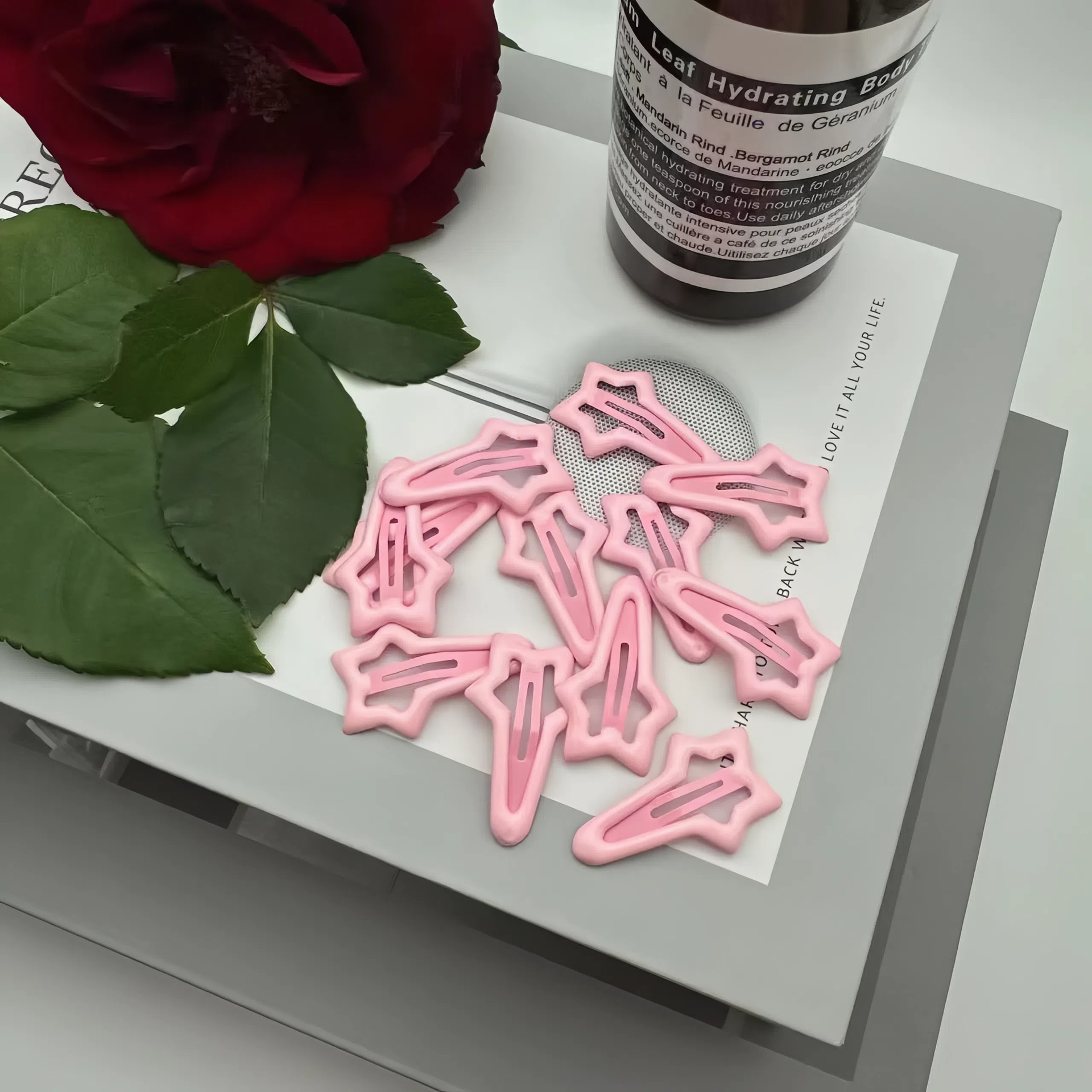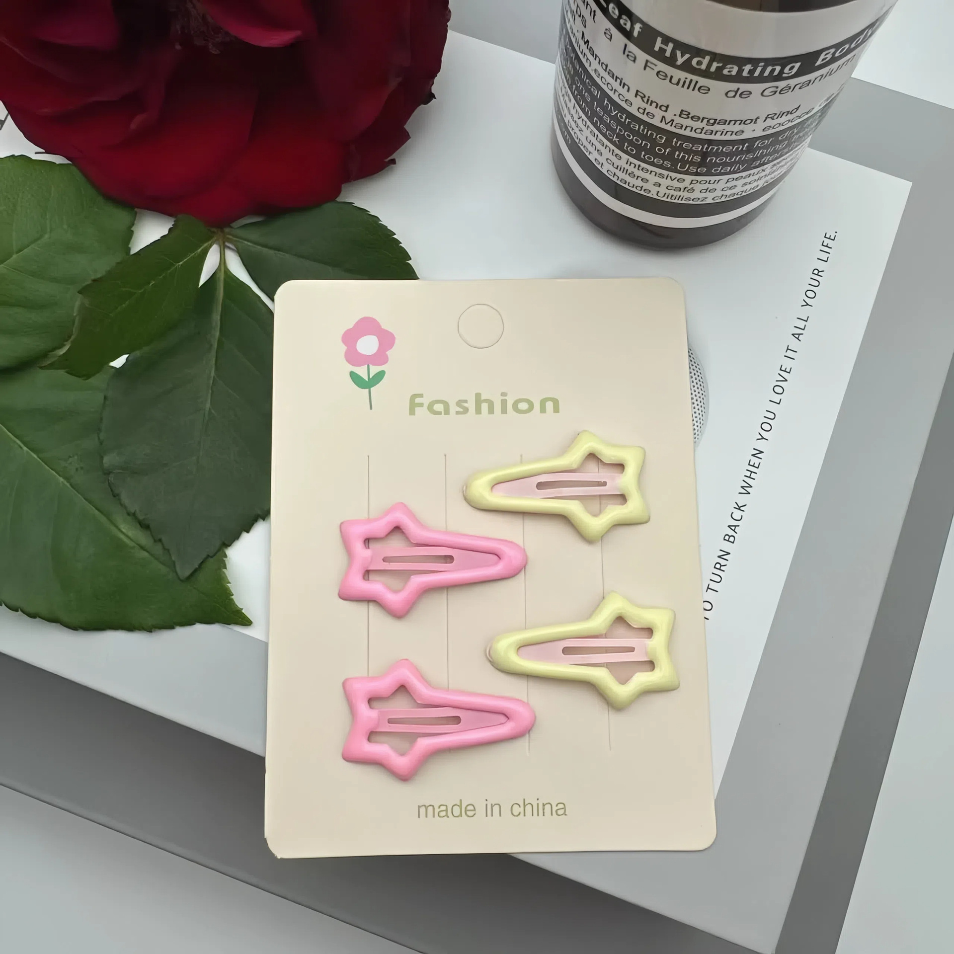 meteor children hair clip-pink + beige (with cardboard)