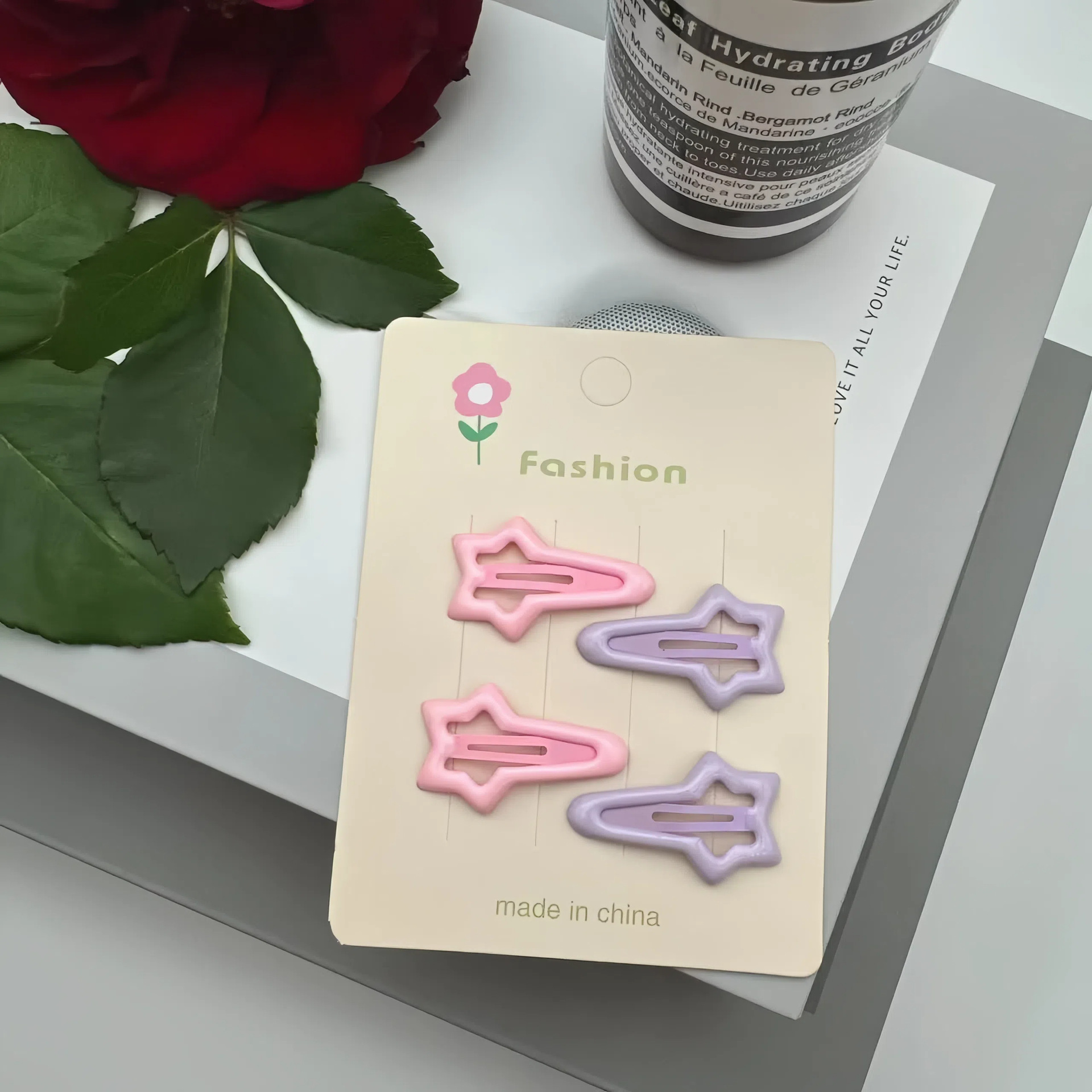 meteor children hair clip-light pink + light purple (with cardboard)